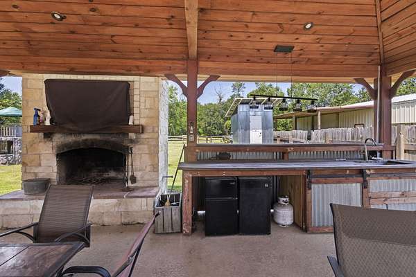 - Covered Patio, Outdoor Fireplace, Pond(s), Pool