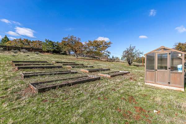 This starter homestead backs to over 200 acres of BLM land with a small but spacious 2-bedroom, 1 bathroom stick-built home. New features and updates include a new roof and gutters, paint inside and out, newly renovated porch/entry, and 3 new mini-splits. The large picture windows and vaulted ceilings make the home feel grand despite its petite size. Outside you'll find a generous garden area with deer fencing, fruit trees (pear, cherry, peach, almond and pomegranate!), and a quaint greenhouse. There's also plenty of space for a whole flock of birds and other small farm animals in the coop and small barn. Views of Mt McLoughlin complete this peaceful homestead retreat. Welcome Home!