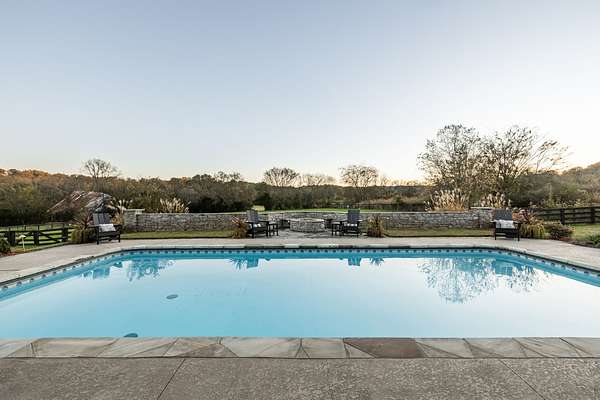 This is the Tennesse dream! Meticulously maintained and beautifully renovated 4400 sq ft farmhouse with separate studio and large garage/barn. Located on 5.25 acres with no HOA, this is the perfect place to live out your homesteading dreams! Land is flat, fully fenced and tree-lined for wonderful privacy. Extensive updates to the home since 2020 include a large great room with bluestone floors, wood burning fireplace, half bath, bar area and inside grill with windows and double French doors opening to the outdoor pool area. It's the perfect space to entertain all of your family and friends. The kitchen has great work space with marble counters, open shelving, standalone island and 64" fridge/freezer. The adjoining dining room has gorgeous built ins and leads into a breathtaking main living space with hand-hewn beams and large fireplace. The first floor primary suite includes a gas fireplace, brand new closets and spa-like bathroom. Den has more built-ins and fireplace and is perfect for a reading area or an office. Upstairs is light and bright with two bedrooms, a bathroom and lots of storage. There's a 3 car garage with epoxy flooring... one of the stalls is being used as a home gym.The stand-alone studio is perfect as an office, recording studio or art studio. There's also an amazing garage/barn perfect to house an RV or to use for any hobby you might have. Enjoy sunsets pool-side looking out over your own private heaven. Grow your own food with large, fenced garden with raised beds and the cutest potting shed. Fully encapsulated crawl space, new roof, new hot water heater, new landsacaping and new walkway. The best part? It's only 15 minutes away from the stores at Berry Farms. This property needs to be experienced and not just seen to understand the care and detail that make this home so incredibly special.