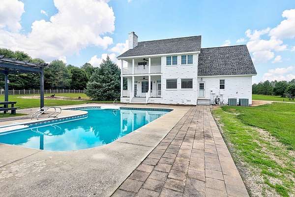EQUESTRIAN DREAM - Escape to the tranquility of country living with this exceptional property, ideal for horse enthusiasts and nature lovers alike. Situated on over 12 breathtaking acres, this home offers: Approx. 3,000 sq. ft. of living space, 4 bedrooms and 3.5 bathrooms, an office area, an inviting pool for outdoor entertaining and one spacious workshop and one barn. The workshop is a 25 x 25 steel building with two raised doors. The barn is 34 x 48. It has electricity and water. It includes a tack room, a feed room, 3 stalls, and a birthing stall. Experience the beauty of nature with breathtaking sunrises and sunsets off the 4 covered porches. Priced at 589,000, this property is a rare find for those seeking both luxury and space. Only four hours away from The World Equestrian Center and 3.5 miles to the high school and town square.