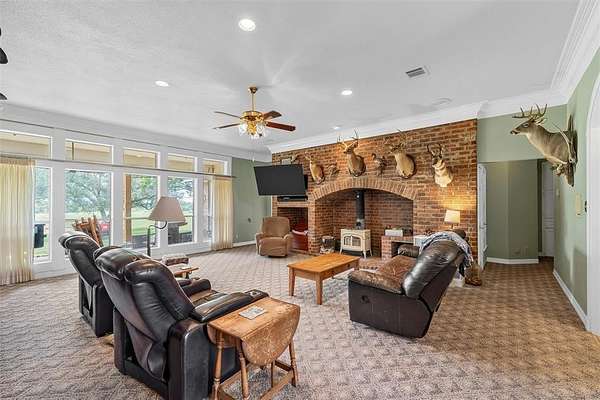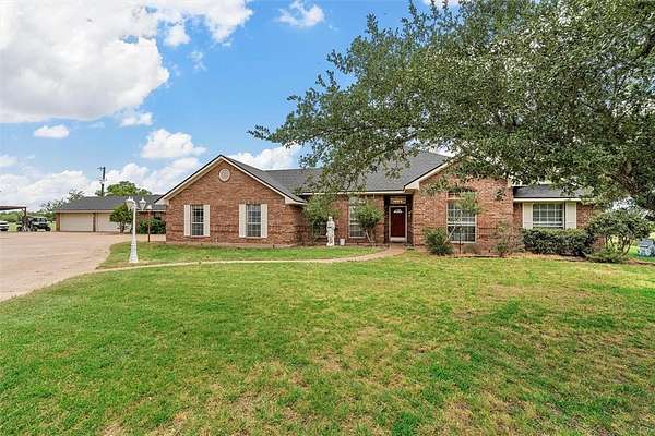 Perfectly placed down a long private driveway you will find this beautiful custom built brick home set beneath a majestic 500-year-old oak tree. Situated on 78 acres in a highly desirable area of Falls County, TX this property blends timeless rural charm with modern comfort. The 2,500+ sq ft home features 3 spacious bedrooms and 2 full baths, ideal for both everyday living and entertaining. The expansive primary suite offers an extra large bedroom with a cozy woodburning fireplace and a bath that has dual vanities, walk-in shower, soaking tub and oversized walk-in closet. At the center of the home, a generous living area showcases a distinctive hand-crafted brick hearth with a wood-burning stove, creating warmth and character for the whole family to gather around and enjoy. The kitchen includes custom hardwood cabinetry, ample counter space and breakfast area with gorgeous views of open pastures. Step out from the kitchen onto a large covered back porch perfect for grilling or relaxing while taking in all that the outdoors and peaceful living has to offer. A garage apartment with a full bath provides added convenience for guests. With three garages and an additional carport, there’s plenty of room for vehicles & storage. The land is equally impressive, featuring fully fenced, sandly loam, improved coastal pastures that yield hundreds of bales annually along with wooded areas rich in mature hardwoods and wildlife. Four stock tanks support livestock and offer endless opportunities for fishing and recreation. The large equipment shed with a separate entry from the road can be utilized for versatile uses. Located on a quiet country road, this property delivers privacy, productivity, and scenic beauty ideal for those seeking a tranquil rural lifestyle without giving up modern amenities. AG Exempt. No Restrictions. Rosebud-Lott ISD.