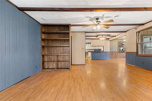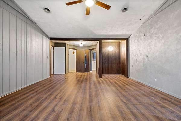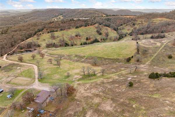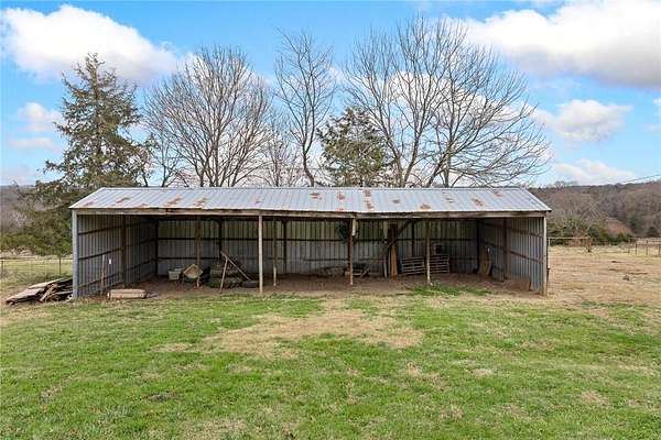 The land is primarily open with gently rolling pasture, complemented by mature timber, and is fully fenced-ideal for running cattle. Five ponds provide water for livestock and attract abundant wildlife. The property's rolling topography offers scenic views across the Ozark hills.