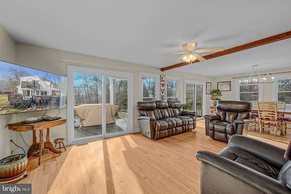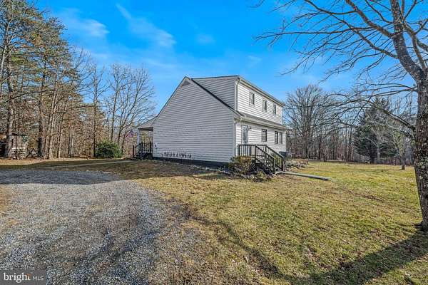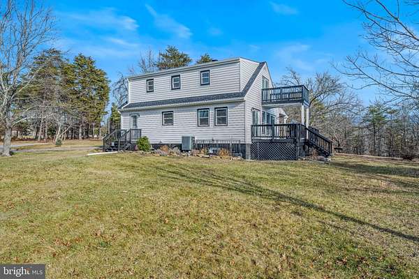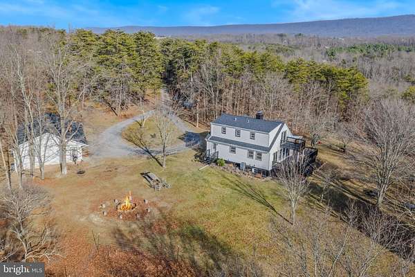 Nestled between the mountains, this charming farmhouse-style residence offers a harmonious blend of modern comfort and rustic charm. With 4 spacious bedrooms and 2 full bathrooms, this home is designed to cater to your every need, providing a warm and inviting atmosphere that always brings you home. Step inside to discover an open floor plan that seamlessly connects the family room and kitchen, making it ideal for gatherings and everyday living. The kitchen boasts upgraded countertops, a central island with cooktop, and stainless steel appliances, including a dishwasher, garbage disposal and electric oven/range ensuring that meal preparation is both enjoyable and efficient. The cozy breakfast area invites you to savor your morning coffee while basking in the natural light that floods the space through new energy-efficient windows. The living area features beautiful hardwood floors and exposed beams, and a brick wood-burning fireplace. Major renovations completed in 2022 and 2025 have elevated this home to excellent condition ensuring that you can move in with peace of mind. The partially finished basement offers additional space for recreation or storage, complete with two sump pumps and a water treatment system for added protection. Outside, spanning an impressive 26.5 acres, this property offers a private and secluded retreat surrounded by nature and the tranquility of mountain living. The wrap-around porch and upstairs bedroom balcony beckon you to relax and soak in the natural beauty all around you. Thoughtful exterior features include landscaping with fruit trees, a grape arbor, a garden, a swing, a hammock and several picnic tables. Additional features include a new more efficient gutter system as well as new siding, and multiple .outbuildings, including a shed, a wood storage shed and a poultry house. Parking multiple vehicles is a breeze with a circular driveway leading to an oversized 1500 square foot 4 bay detached garage with loading dock that easily accommodates more than four vehicles and a generous workspace. The lot is unrestricted, allowing for farming, horseback or ATV riding, gardening or hunting and shooting as several berms are already in place. Whether you're seeking a peaceful retreat, a hobby farm, or a place to entertain, this property is a true gem that promises comfort, convenience, and a connection to the great outdoors. Here you will enjoy year round access to your own private oasis. Don't miss the opportunity to make this enchanting residence your own where every day feels like a getaway!