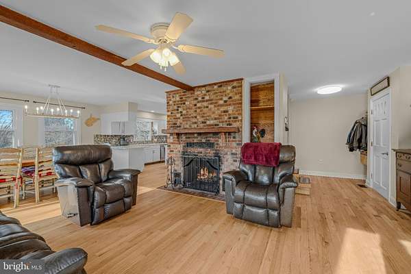 - Breakfast Area, Dining Area, Entry Level Bedroom, Exposed Beams, Family Room Off Kitchen, Island Kitchen, Open Floor Plan, Pantry, Upgraded Countertops, Water Treat System, Wood Floors, Wood Stove