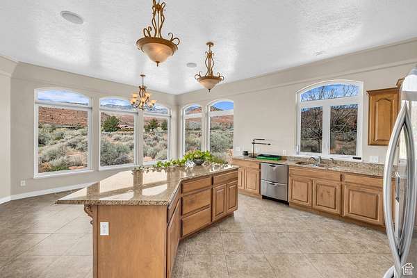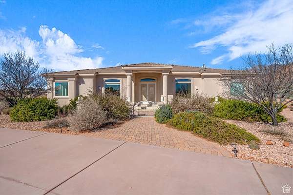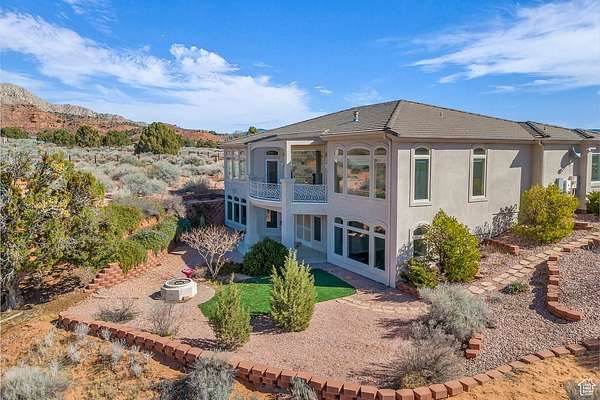 Nestled on 3.5 acres of prime HORSE PROPERTY, this incredible home offers breathtaking, unobstructed views of Pine Valley and Southern Utah's red mountains. Perched on the edge of a private canyon with its own serene creek, the backyard is a secluded retreat featuring an expansive covered patio and ample privacy, perfect for relaxing or entertaining. Located in the prestigious El Dorado Hills subdivision, this home boasts a gorgeous entry leading to an inviting living space and a balcony that overlooks the panoramic landscape, while large windows throughout flood the interior with natural light. An oversized, detached 3-car garage (approximately 38' wide by 26' deep) provides ample space for storage and vehicles. Just minutes from world-class hiking and mountain biking, this one-of-a-kind property combines luxury, privacy, and incredible potential with mostly flat land ready to be transformed. This is a short sale, all offers will require 3rd party bank approval. Buyer to verify all information, deemed reliable, however buyer to verify all info including utilities, rental restrictions, and HOA information if applicable.