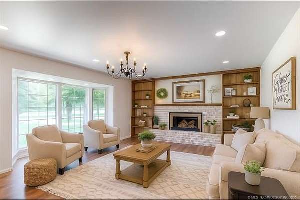 THIS UNIQUE PROPERTY'S CHARACTERISTICS INCLUDE: MID-CENTURY ARCHITECTURE - Built in 1960, the home captures classic ranch-style design with updated finishes, brimming with charm and some fascinating features, that bridge past and present. DUAL LIVING SPACES - Both levels feature separate kitchens, bedrooms, baths, and living rooms-perfect for multi-generational living and/or large households. MASSIVE SQUARE FOOTAGE - 4,332 sqft of renovated living space (Appraisal), PLUS a 720 sqft detached shop that could house three vehicles or become a dream workshop. NATURE AND SECLUSION MEETS CONVENIENCE - The location has a country feel with city access being nestled at the end of a dead-end road on 2 acres, the home offers peace and privacy, but is only 10 minutes from downtown Tulsa. Hwy 412 and the Gilcrease Expressway/Turnpike make it very quickly accessible anywhere in Tulsa. WILDLIFE WATCH - Deer, squirrels, birds, and even a Whippoorwill, said to announce the return of summer, all make frequent appearances around the home. RECENT RENOVATIONS - In 2023, new paint, waterproof vinyl laminate flooring, and upgraded lighting give it a fresh, like-new, move-in-ready appeal. ENERGY & amp; TECH READY - Equipped with fiber optic availability and electric appliances included throughout the two levels of living space. Must see to appreciate. Price Adjustment is below Residential Appraisal Report obtained prior to listing. Agent/Owner.