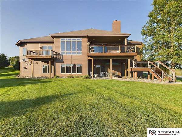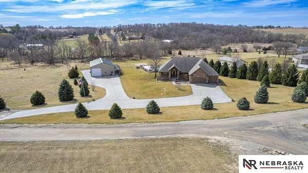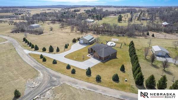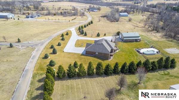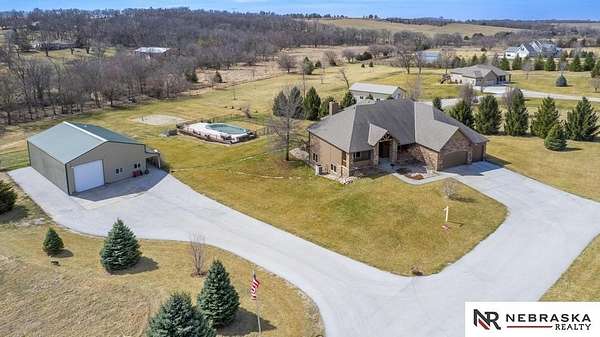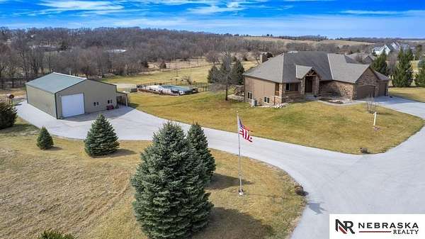 Angela Coleman, M: 531-205-6556, acoleman@nebraskarealty.com, https://www.nebraskarealty.com - A rare opportunity combining luxury living, acreage, and unmatched functionality on 5.97 Acres. This 5 bed, 4 bath home offers an open floor plan with maple hardwood floors, wood-burning fireplace, and a spacious kitchen featuring a large island, walk-in pantry, and formal dining. The main-level primary suite includes a soaking tub, separate shower, gas fireplace, and private deck. Two large bedrooms share a Jack-and-Jill bath. Walkout basement built for entertaining with 2nd Kitchen, dishwasher, refrigerator, gas fireplace, 2 bedrooms, 3/4 bath, storage, and bonus room. Large patio for BBQs. Impressive 60x48 fully heated outbuilding with 1,020 finished sq ft (office, kitchen area, half bath). RV hookup. Well water, 2 septic systems, above-ground pool with deck, sand volleyball area. Any homesteaders dream, plenty of space to create lasting memories!
