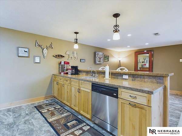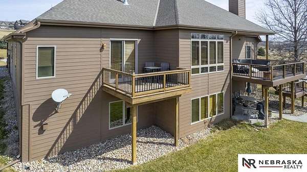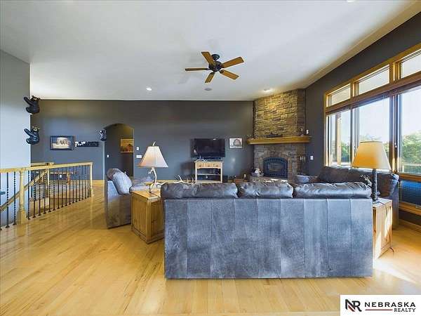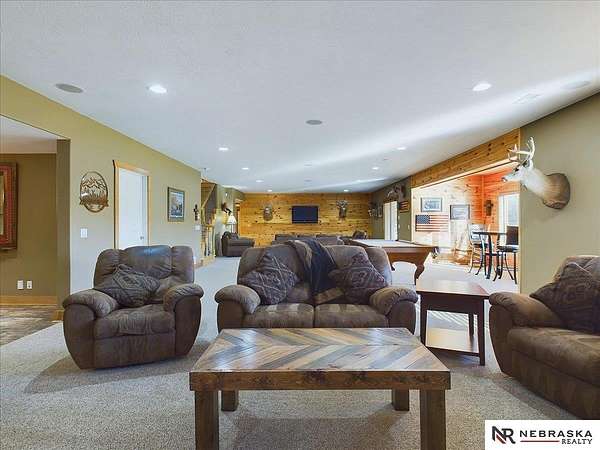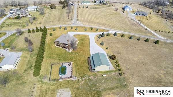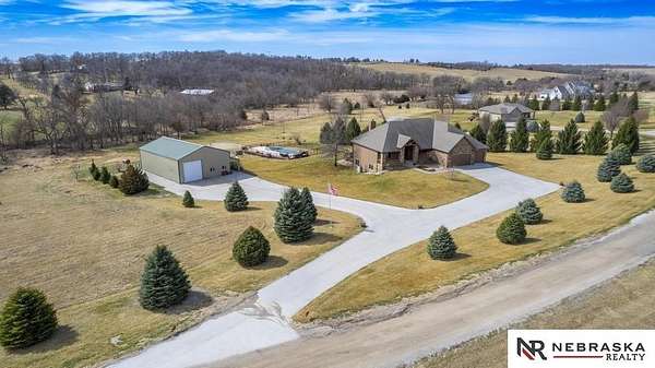 Angela Coleman, M: 531-205-6556, acoleman@nebraskarealty.com, https://www.nebraskarealty.com - A rare blend of luxury, space, and versatility on 5.97 acres + Heated Outbuilding(48x60). This Custom Build Walkout Ranch with 5bd, 5ba with 3car heated garage offers an Open Layout with over 4900 sq.ft. The kitchen welcomes you with a large island, walk-in pantry, and formal dining area that flows seamlessly with the main living space. The main-level primary suite features a soaking tub, its own fireplace, walk-in closet and private deck access perfect to watch the sunset. 2 additional bedrooms are connected by a Jack-and-Jill bathroom w/ double sink for convenience. The walkout basement is equipped with a kitchenette, 2 large bedrooms and 3/4 bath; space designed for entertaining. Outbuilding has 1020 finished space sq. ft. with AC, kitchen area, and 1/2 bath perfect for a home business, workshop, or living space. RV hookup included. This acreage is fully ready for outdoor enjoyment with a