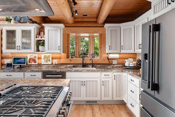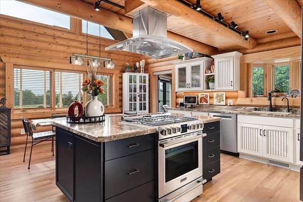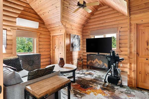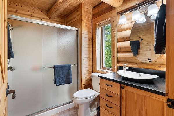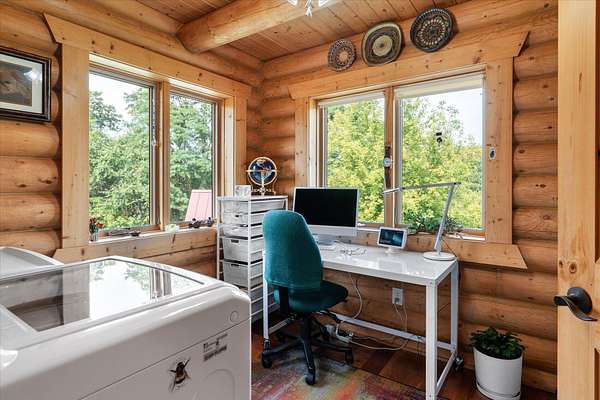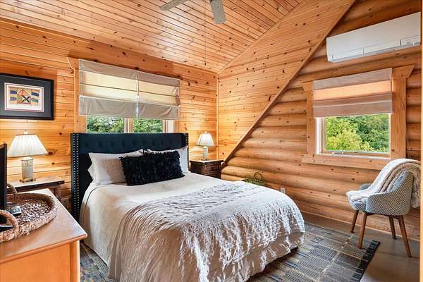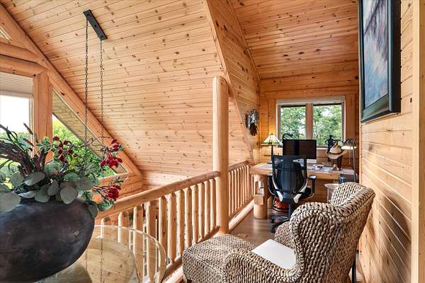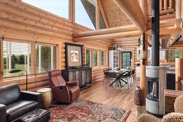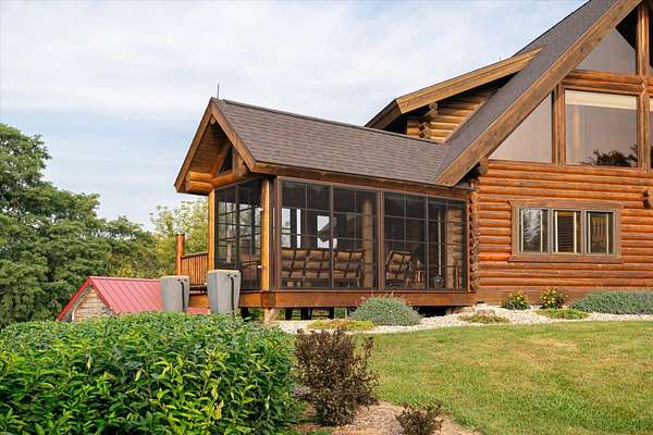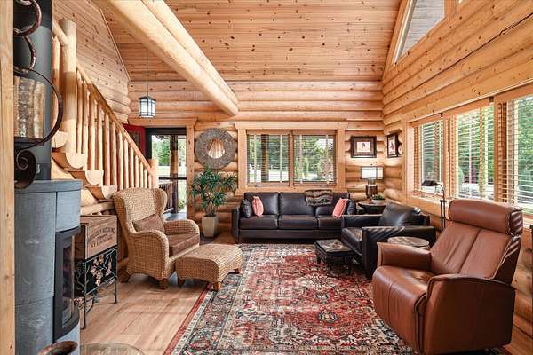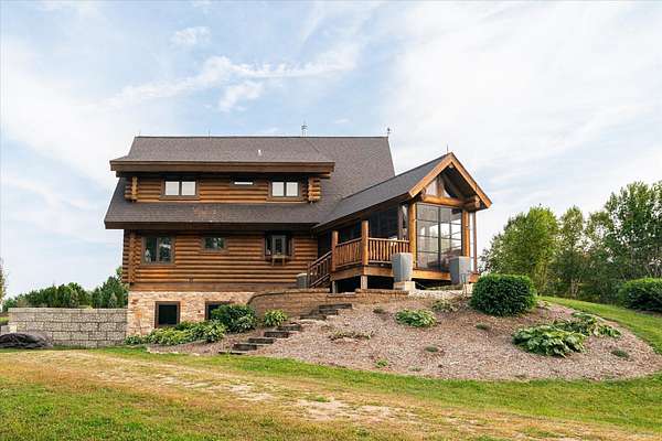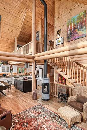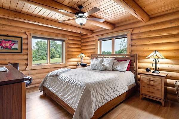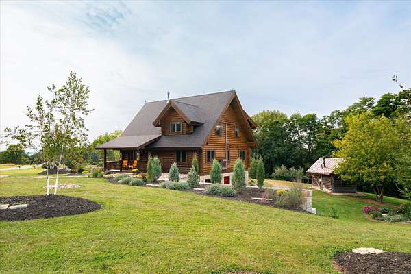 This custom log home was professionally designed and built in 2006 under the direction of an accomplished architect. This experience is conveyed in the specific nuances and detailed impressions that will surround you in this home. Beyond the craftsmanship, the design features of the 2024-2025 remodel exude quality and an atmosphere that will satisfy you in every season. There is new around every corner...new kitchen, appliances, flooring, fireplace, furnace/ac, roof, gutters, landscaping.. The list could go on, but the upgrades in the enclosed sunroom are to die for! The Master bedroom suite is on the main level with two bedrooms and a full bath upstairs and plenty of storage on the lower level. An adjacent 4.0 acre parcel is also available to add to this sale for a total of 8.0 acres!