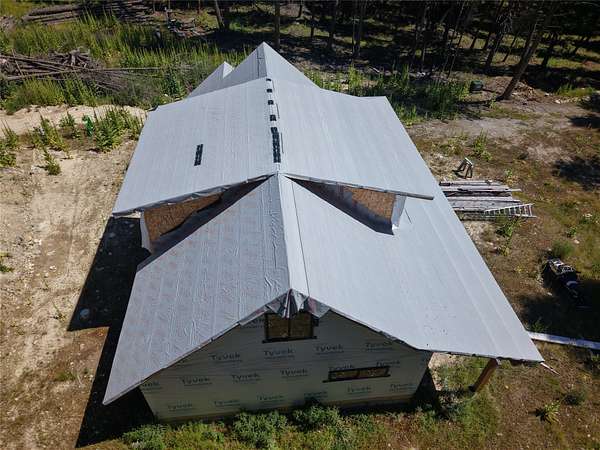 Secluded Timbered Retreat. Nestled on 5 beautifully timbered acres, this serene private property offers the perfect blend of seclusion + accessibility, with easy year-round access off a well-maintained county road. The heart of the property is a fully dried-in 2,600 SF custom home, featuring 3 bedrooms and 2 baths, and a 5' crawlspace just waiting for your finishing touches to bring your vision to life. The well, power, phone + fiber are already in. Adding to the charm, you'll find a cozy 16' x 16' soft-sided cabin, ideal for a guest retreat or temporary living while you complete the main home. With house plans included, concrete piers already in place for a guest cabin, and a stack of milled lumber for siding, much of the groundwork has been done. For those looking to take the craftsmanship further, a mill and additional logs are available for $4,000, providing the materials to complete your dream with your custom touch.