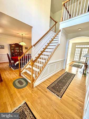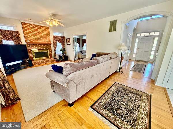 Discover the perfect blend of space and privacy in this stately, 4,000+ sqft. Colonial, situated on a sprawling 1.97-acre lot. A classic brick walkway leads you past the manicured lawn to a welcoming covered front porch. Inside, the main level impresses with gleaming hardwoods throughout the formal living and dining rooms. The heart of the home is the bright, airy kitchen, finished with tile flooring, ample cabinetry, and a built-in peninsula offering bar stool seating. Just off the kitchen, a versatile bonus room serves as a dedicated home office or an expansive walk-in pantry. Relax in the spacious, carpeted gathering room with fireplace or step outside to the private rear patio, perfect for quiet mornings or summer entertaining overlooking your vast backyard. Upstairs, the primary suite is a true sanctuary, boasting vaulted ceilings, a spa-like bath, and three large walk-in closets. To complete the upper level, a hall bathroom with tub/shower combo plus a dual sink vanity and three additional decent sized bedrooms with nice closet space. The unfinished basement offers endless potential for future equity, already roughed in for a full bath. With a two-car garage and an unbeatable location easily within commuting distance to DC/Northern Virginia. This home feels tucked away yet remains a short drive from major shopping and dining.