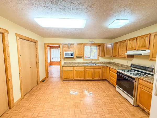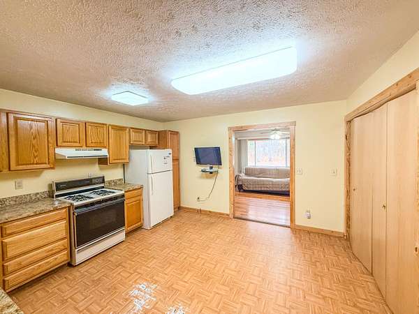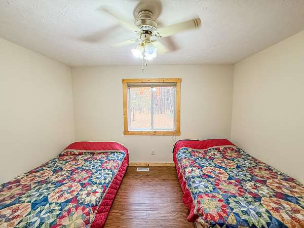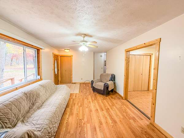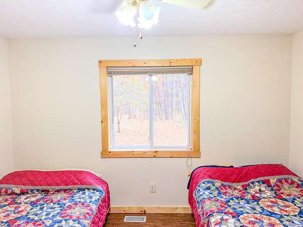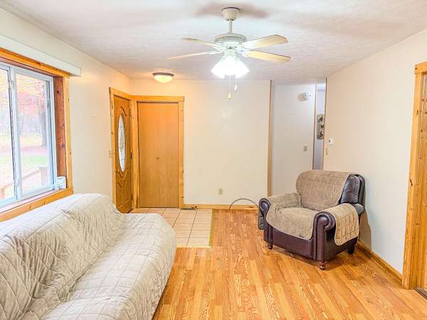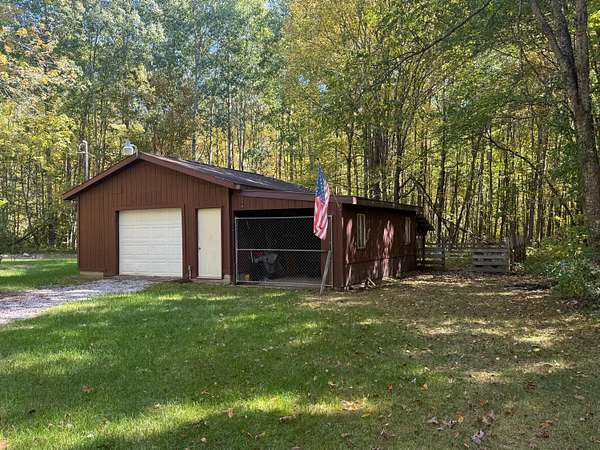 Tucked away at the end of a long, private driveway, this 2-bedroom, 1-bathroom home offers peace, privacy, and plenty of space on 10 acres of land to enjoy the outdoors. With 1,100 square feet of comfortable living space, this home features a large kitchen with ample cabinetry and room for family gatherings. Stay comfortable year-round with a forced air furnace and central air conditioning. The property also includes a spacious two car detached garage, perfect for vehicles, tools, or extra storage. Whether you're looking for a quiet place to call home or a private getaway surrounded by nature, this property delivers both comfort and seclusion.
