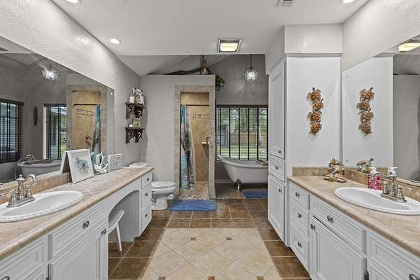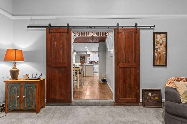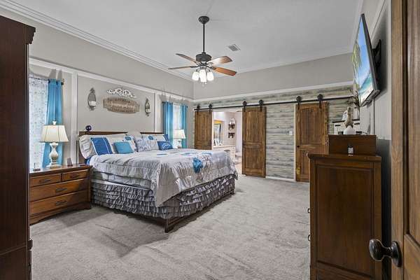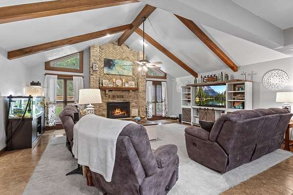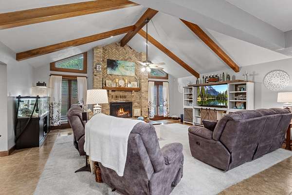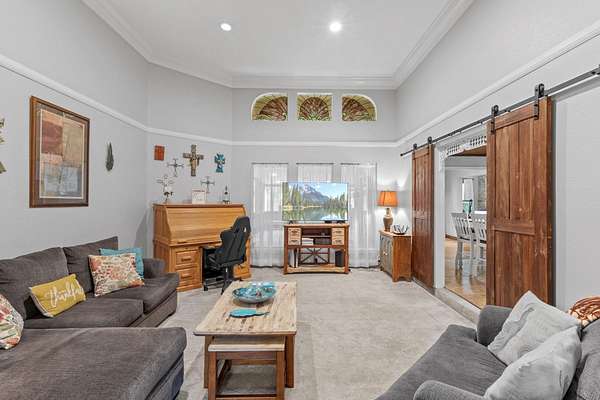Experience luxury, space, and impeccable care in this stunning 2.35-acre estate! Designed for entertaining, the open-concept layout features a grand kitchen with island, breakfast bar, and walk-in pantry flowing seamlessly into a warm den with fireplace and sunroom. Step through to the screened-in back porch with recessed lighting and ceiling fans perfect for evening gatherings or quiet mornings. The elegant primary suite impresses with barn doors, dual vanities, a clawfoot tub, and a walk-in shower. Formal dining and living spaces plus a private office (or 6th bedroom) add flexibility for any lifestyle. Upstairs offers another living area, 3 spacious bedrooms, and a full bath with double sinks. Outside, enjoy a 24x30 powered shop and 12x30 covered storage. Newer siding, beautiful curb appeal, large corner lot makes this home move-in ready for its new owner. Rarely do homes this grand, large immaculate, and well maintained hit the marketm, act fast and enjoy the space!