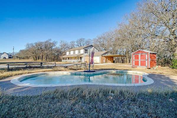 Exceptional farm and ranch property in Grandview, Texas, thoughtfully improved and well-suited for horses, livestock, or a multi-generational setup. The land features productive sandy loam soil and a gated entry offering privacy and ease of access. Equine amenities include a 6-stall horse barn complete with tack room and wash rack, plus an insulated second barn with a wash rack equipped with hot water--ideal for livestock, show stock, or additional storage. A nice, level area is already prepped and ready for an arena, making this property turnkey for horse enthusiasts. The property offers two residences. The main home features 4 bedrooms, 2.5 baths, a 2-car garage, and all new Andersen windows, providing comfort, efficiency, and natural light. The second home includes 2 bedrooms and 1 bathroom with a carport, perfect for guests, extended family, or ranch help. Enjoy outdoor living with a pool, expansive open space, and a layout designed for both function and relaxation. A rare opportunity to own a well-improved ranch property in a desirable Johnson County location. Minerals available with sale with acceptable offer.