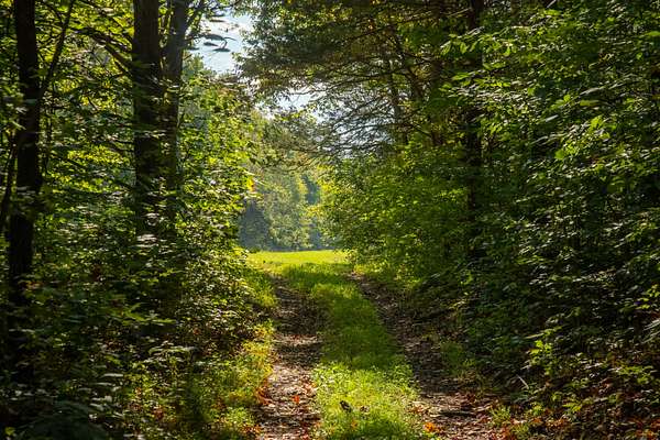 The property has a great mixture of gently rolling hills to deeper valleys. There are a few tall, long ridges, lined with mature trees that stretch out across the property and show off well above the lake below. There are several open areas with fields that range from just about an acre to a couple of them that are about 8 to 10 acres in size.