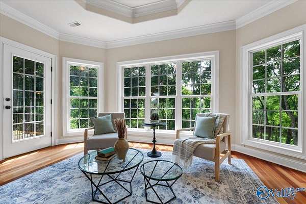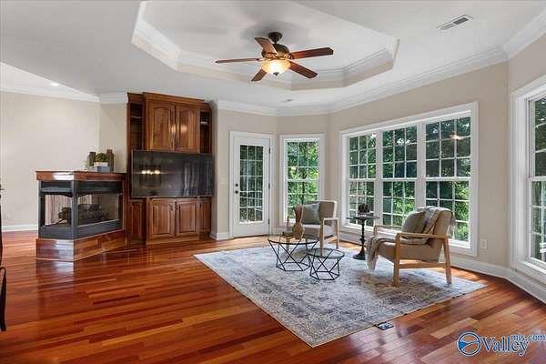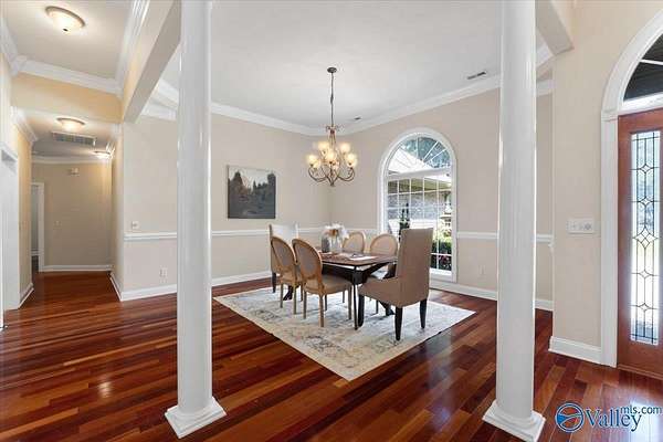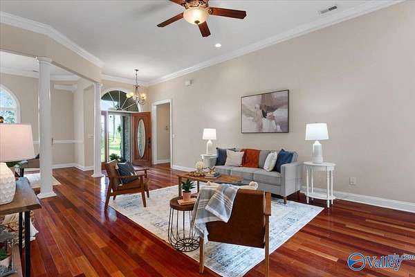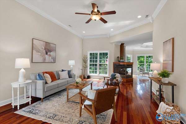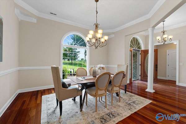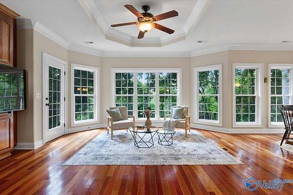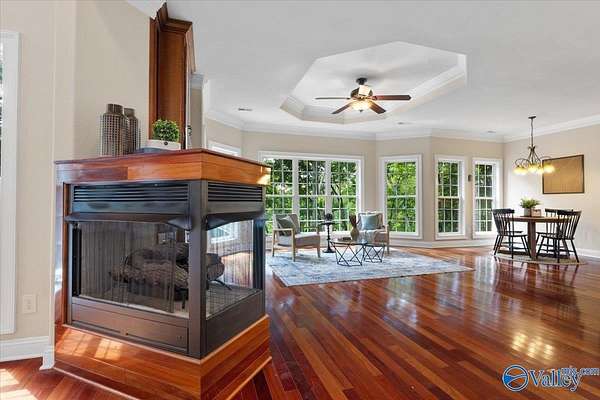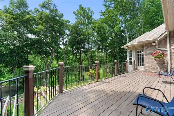 Experience elegant country living in this beautiful basement home nestled on 3 partially wooded acres along the scenic Flint River. A long private drive leads to a peaceful setting surrounded by mature trees and stunning river views. Relax or entertain outdoors on the spacious deck overlooking nature, or explore the open yard perfect for gardening, play, or gatherings. Inside, enjoy 10-ft ceilings, hardwood floors, a double-sided fireplace, and a chef's kitchen with granite countertops. The finished basement with kitchenette, rec room, and storm shelter is ideal for multi-generational living. A true riverfront retreat combining comfort, privacy, and natural beauty.