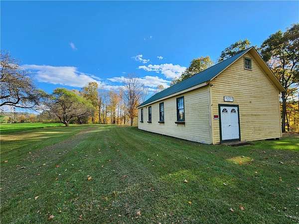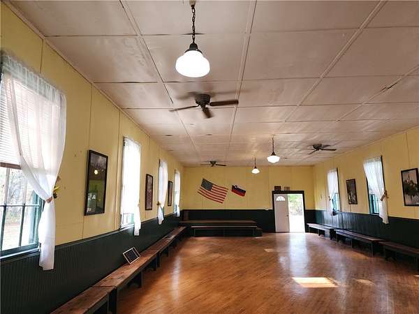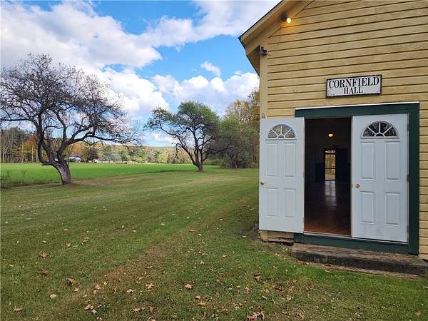Step back in time and imagine the possibilities with this rare offering-The Cornfield, a beloved local landmark and a testament to community spirit. Originally constructed in 1928 on land provided by a local farmer, this one-story wood-frame building, formerly known as the Farmers' Independent Benevolent Society Hall, has served as a vibrant gathering place for nearly a century. From community dances to social meetings, this property has been the heart of Fly Creek's cultural life. Expanded in the late 1950s to include a kitchen wing, pavilion, a septic system with 2 restrooms, the building continues to offer practical features including 100-amp electric service, a drilled well, and a newer metal roof that protects and complements the beautifully preserved original wood interior. Tucked discreetly off the County Highway between Cooperstown and Fly Creek and honored with placement on the National Register of Historic Places in 2002, this unique property is both a piece of history and a canvas for future use. What story will you write in the next chapter of The Cornfield's legacy?