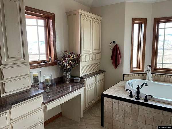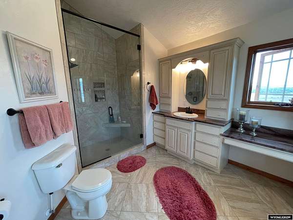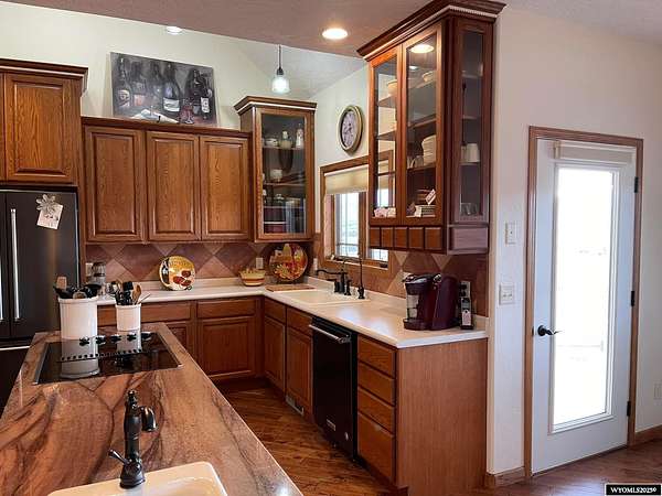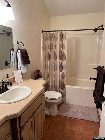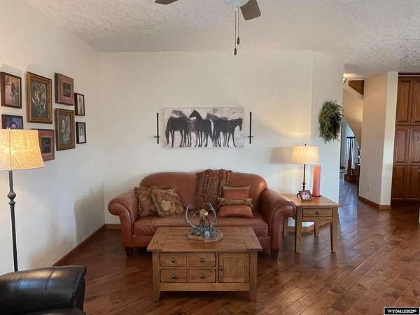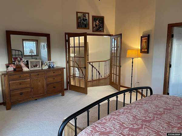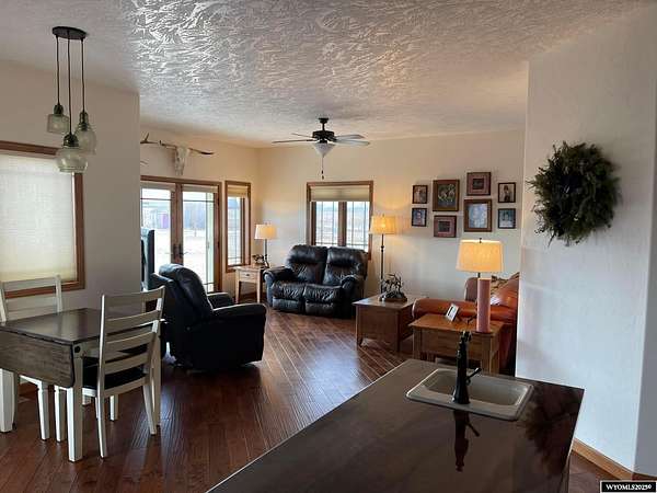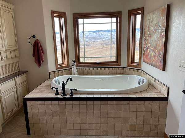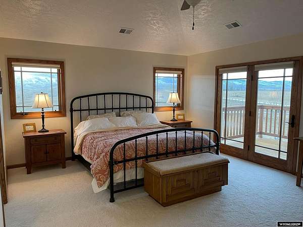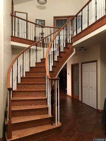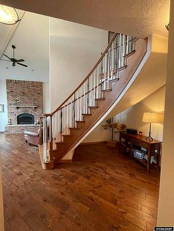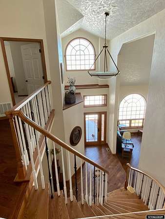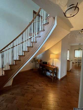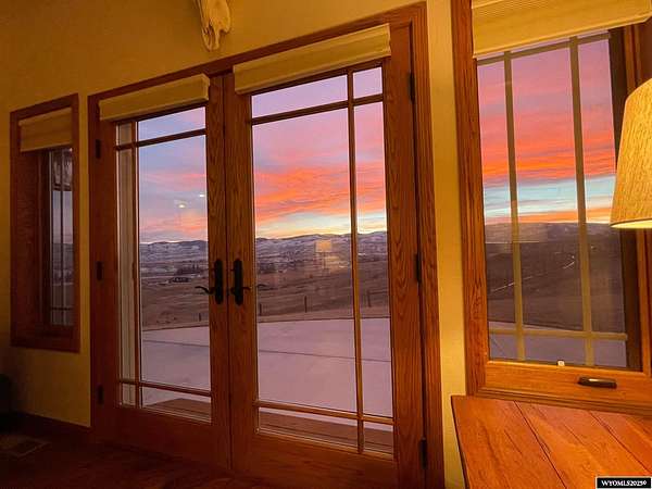 This home is stunning in its quality, impressive in its views and welcoming in how it feels. Situated on a gorgeous 1.5+/- irrigated acres, this is a rare opportunity to purchase custom construction that is surrounded by maintained, green productive grassland and an on-top-of-the world panoramic view of the full Lander valley. The traditional style, warm colors, gorgeous hand scraped red oak solid hardwood flooring and appealing floor plan make the home attractive and inviting. The kitchen, dining room, den and living room are all excellent and well-defined gathering areas, positioned to capture the magnificent views, and also well-thought for furnishings and home decor. The lovely kitchen has quality cabinetry, island with granite counters, stainless steel appliances and an open dining area that keeps everyone together. The outdoor living is sensational; the patio doors open up to unmatched views of pasture, mountains, green rolling hills and a bird's eye view of the City of Lander. There's ample natural light throughout, and the upgraded clad casement windows frame the view beautifully and thoughtfully in every room. The 9' high ceilings on the main level, with cathedral ceilings in multiple main-level rooms, and including cathedral ceilings throughout the full upper floor, make the home feel light and open. The grand brick hearth fireplace and the notable hand-built freestanding hanging circular staircase are some of the striking upgrades of this home. The primary bedroom has a luxurious on-suite bathroom, complete with platinum water jet package two-person tub, sizable and tasteful tile shower and a walk-in closet. Construction details include: two forced air and central air systems for efficient temperature control, whole house humidifier, 2'x6' exterior walls, full-house foam insulated (ceiling, walls, crawlspace), French drain system, on-demand hot water and 960' deep plentiful and quality private well. This property has it all! It has complete landscaping and a 3-car garage. It's also like-new in condition, custom in construction detail, upgraded in components and located on a rare piece of productive land with scenic views of wildlife and the Wind River Mountains. **The purchase must be contingent upon the successful replat of the property through Fremont County Planning. Additional acreage may also be available for sale together with the closing of this property. Contact agent for details.