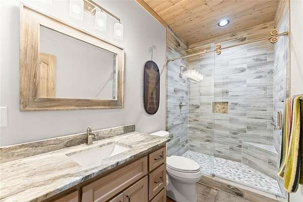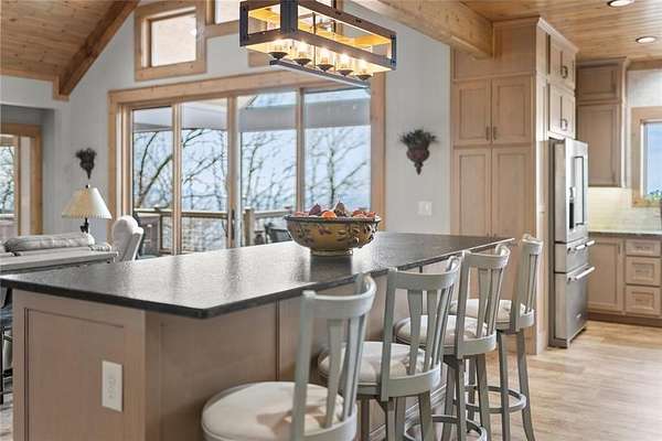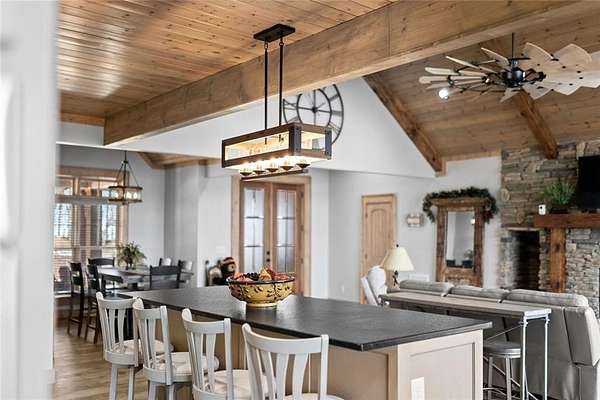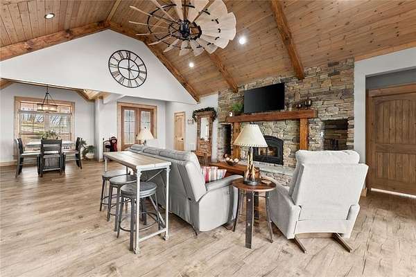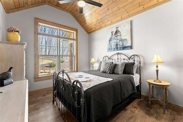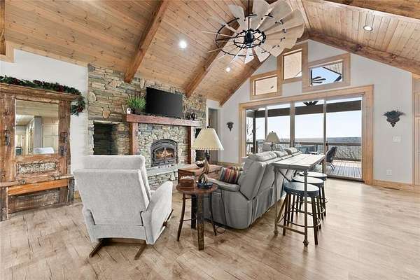 Lake Laceola-Mountain Lodge Retreat with Long-Range Views in Gated Community Experience the perfect blend of craftsmanship, comfort, and mountain charm in this thoughtfully designed 3-bedroom, 2-bath single-family home featuring a desirable split-bedroom floor plan. The owner's suite is privately situated on one side of the home, while the guest bedrooms are tucked away on the opposite wing for added privacy. Designed with both everyday living and entertaining in mind, the main living area showcases warm wood finishes, custom cabinetry, and a striking stone fireplace that anchors the space with authentic mountain lodge character. Expansive windows and an oversized main-level deck invite the outdoors in, offering breathtaking long-range mountain views that your guests can enjoy year-round. Built by a builder for quality and longevity, this home features upgraded finishes and thoughtful details throughout that are rarely found in typical construction. The terrace level is already sheetrocked, plumbed, and ready for your custom design-ideal for future expansion, recreation space, or additional living quarters. A separate lower-level utility garage with its own driveway provides convenient access for tools, outdoor equipment, or recreational vehicles. Located within a gated community of upscale homes, residents enjoy access to premium amenities including a clubhouse, swimming pool, private fishing lake, and dedicated boat storage area. If you're seeking mountain living with exceptional craftsmanship, privacy, and room to grow, this home delivers on every level.