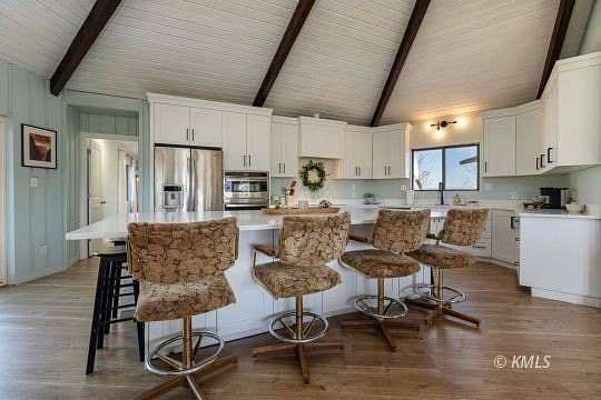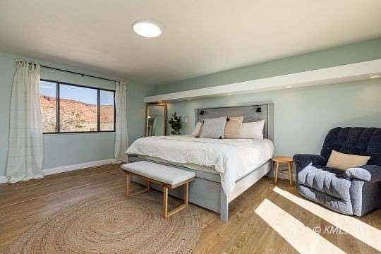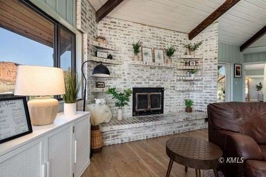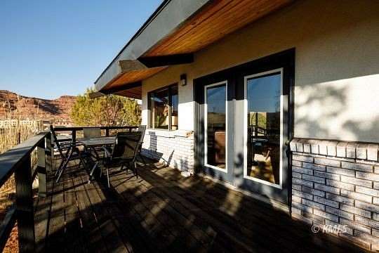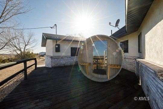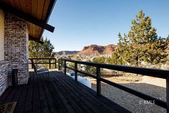 Welcome to The Bear Den! This recently remodeled, turn-key home offering 2.12 acres of horse property all within Kanab city limits. This property is perfect for those looking for a primary residence or an investment opportunity such as a short-term rental, currently in place. The home features soaring vaulted ceilings in the living room, complemented by panoramic windows that flood the space with natural light and red rock beauty. A whitewashed brick fireplace serves as a cozy focal point, seamlessly connecting the living area to the spacious kitchen. The oversized kitchen island with breakfast bar seating creates an ideal setting for entertaining. With 3 bedrooms, 2 bathrooms, a separate laundry room and wash sink, this home is thoughtfully designed for comfort and convenience. Step outside to the wraparound deck, where you can relax and take in the stunning views-perfect for outdoor living. Additional highlights include a sauna, storage shed for extra space, and xeriscaped landscaping for easy maintenance. Furnishings are negotiable, offering flexibility to make the space your own. Don't miss out on this unique property that offers both charm and potential! (Buyer to verify)