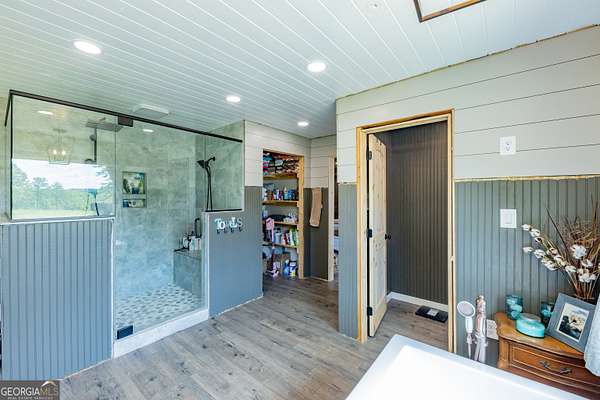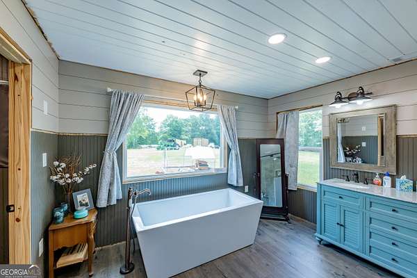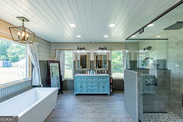 - Double Vanity, High Ceilings, Master On Main Level, Separate Shower, Soaking Tub, Tile Bath, Vaulted Ceiling(s), Walk-In Closet(s)