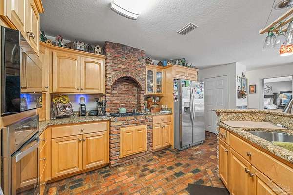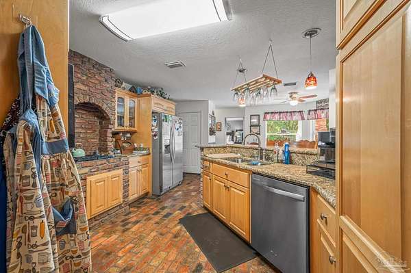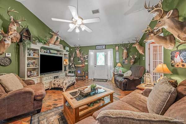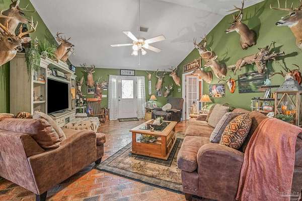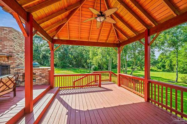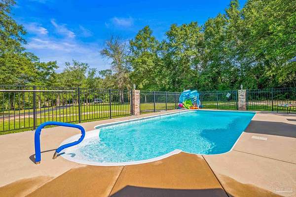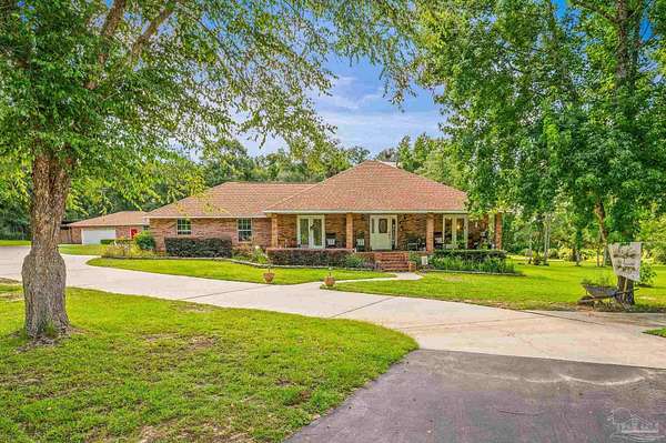 OPEN HOUSE 10/25/25 10:00 A.M. - 2:00 P.M. Welcome to PARADISE- This beauty is an exceptional, one-of-a-kind estate tucked away on 7.23 private acres in the peaceful heart of Milton, Florida. Built in 1995 by a master masonry contractor, this home is a testament to quality craftsmanship, thoughtful design, and timeless Southern charm. Outdoor enthusiasts and nature lovers will fall in love with this property that truly brings the outdoors in. Whether you're casting a line in your stocked private pond-teeming with bass, catfish, and bream-or exploring the surrounding acreage, this is a hunter's and fisherman's paradise. Step inside and you'll immediately notice the artisanal detail throughout, including a custom brick cooktop surround and brick-accented breakfast bar in the kitchen, paired beautifully with granite countertops and ample space for gathering. The open layout, high ceilings, and warm finishes create a home that feels both luxurious and inviting. Out back, the amenities are simply spectacular. A two-level deck sets the stage for unforgettable Florida evenings, featuring a masonry fireplace, charming gazebo, and a Big Green Egg grill that conveys. Enjoy summer days by the in-ground pool, or host game days and cookouts in the outdoor entertainment area-complete with a TV, custom-built cabinetry, and a full outdoor kitchen. The impressive 30x40 detached garage is a standout feature on its own, offering endless versatility. Whether used as a workshop, storage space, or hobby haven, it includes a half bath, remote-controlled garage door, and an extended 20x40 lean-to for even more covered space. The home has been thoughtfully updated for modern efficiency and peace of mind, including: Spray foam insulation in the attic New impact-rated windows (2022) Impact garage door (2022) New roof (2023) New hot water heater (2025) Perfectly blending rustic elegance with everyday comfort, this home is more than a residence-it's a lifestyle.
