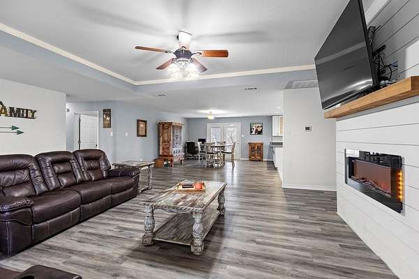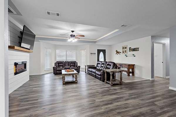 Situated on over six acres on the outskirts of Mabank, Texas, this stunning brick home offers over 2,700 square feet of living space with 3 bedrooms and 2 bathrooms. Designed for both comfort and functionality, the open floor plan creates a spacious and inviting atmosphere, perfect for entertaining and everyday living. The large living area flows seamlessly into the kitchen, where you'll find an island, abundant counter space, and a double oven, making meal preparation a breeze. Whether you're hosting gatherings or enjoying a quiet night in, this well-appointed kitchen is sure to be the heart of the home. The Master Bedroom provides plenty of space to relax, while the additional bedrooms are generously sized, offering comfort for family and guests. Outside, the possibilities are endless with over six acres of land! The expansive property provides privacy and tranquility, while still offering the convenience of easy access to local amenities. Whether you’re looking for space to grow, raise a family, or simply enjoy the beauty of the countryside, this property delivers. Located on State Highway 198, this home is just minutes from the heart of Mabank, where you’ll find shopping, dining, and schools. Enjoy the perfect balance of rural charm and modern convenience in this one-of-a-kind property. Brand new Water Heater, Roof and HVAC was replaced a year ago. The acreage offers plenty of room to enjoy the outdoors, with space for recreation, animals, or future projects. The neighboring metal building is zoned as residential. An easement along the front provides access to that building while keeping the home itself set apart. Just minutes from shopping, dining, and schools, this property offers a unique blend of country living and everyday convenience.