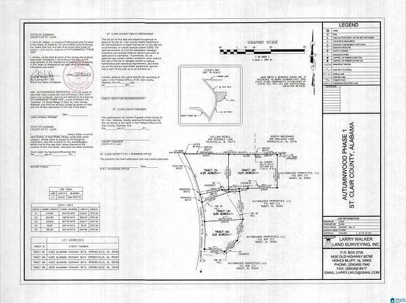 Autumnwood Farms Phase 1 Tract 6 - Only 3 Tracts Available. Tract 1 already Sold! A Farm House Community in the Valley - Springville, AL. Autumnwood Farms is where yourdream becomes Reality. The Valley is a well known and most desired area to Build a Home in St. Clair County. It's a rare offering to find tracts of this acreage availablefor sale. Only a limited amount of Tracts available for the first time. 4 Tracts available in Phase 1 that are 3-5 Acre Pasture Land Tracts. NO HOA. Bring Your OwnBuilder. Does feature an ARC to approve house plans and structures. Restrictions do apply. 1 Level Homes Min. 2000 Sq. Ft. and (Multi Story Homes Min 1,800 Sq ft. on Main Level and overall 2,200 Sq. Ft.). No time frame on Phase 2 being available at this time. Odenville Schools & Springville Address.