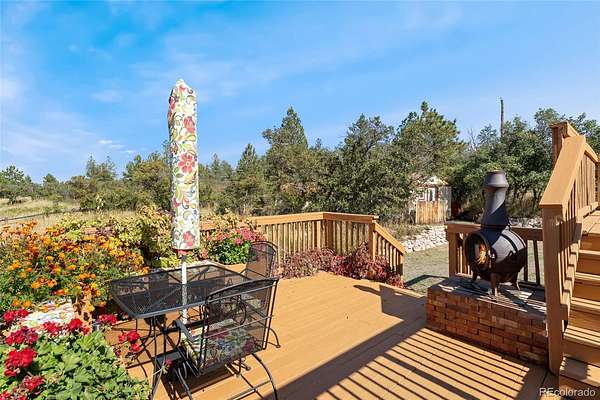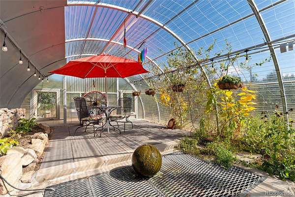 Must see! 1% off rate for 1st year! This move-in ready home on 6.5 private acres in unincorporated Douglas County offers breathtaking Front Range and Denver views just minutes from Sedalia, Castle Rock, and Denver. Zoned Agricultural with flat usable land and no HOA, this is a rare find for a farm, garden, or peaceful retreat. Significant utility savings include paid-off solar panels for lower energy costs and no monthly water bill due to a strong well and large backup cistern. Modern infrastructure features a new septic (2020), 50-year Class 4 roof, and electrical panels for an EV charger, greenhouse, and RV hookup with dedicated RV sewer. The land supports a self-sustaining lifestyle with a custom greenhouse featuring a fish pond, a deer-proof fenced perennial garden, and a detached hobby kitchen for brewing or canning. The property is fully fenced with split-rail and field-wire, subdivided gated paddocks, barns for horses/livestock, and a dedicated dog run. Custom stonework and professional landscaping enhance the serene setting. The interior is freshly updated with new (2025) kitchen appliances and an energy-efficient washer/dryer. The upper level features a bright living room with stunning views, dining area, and a kitchen with quartz countertops and sliding doors to the expansive deck. The primary suite includes a cozy stove, private deck, and spa-like ensuite with a jetted tub. The lower level provides a large family room with a fireplace, two additional bedrooms, a 3/4 bath, and laundry—perfect for guests or multi-generational living. Whether raising animals, cultivating year-round in the greenhouse, or enjoying the privacy of 6+ acres, this property offers the ultimate country lifestyle with easy city access!
