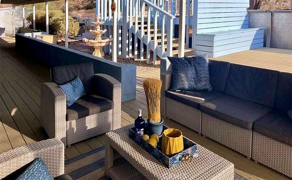 This 3-bed, 2-bath single-level home features 160 sq ft finished loft accessible from one bedroom. Upgrades: extra-thick walls for insulation, double-pane windows, new north roof, 34-panel 13.6 kW solar system, and Generac generator. Interior: new baths, kitchen, tile floors, paint, electrical by prominent designer. Family room has wood-burning fireplace with glass door and fan. Furniture available separately.