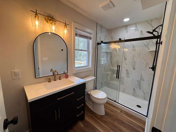 - Breakfast Area, Ceiling Fan(s), Combination Kitchen/Dining, Entry Level Bedroom, Open Floor Plan, Table Space Kitchen, Walk-In Shower Bathroom, Water Treat System