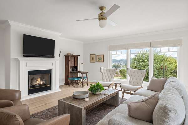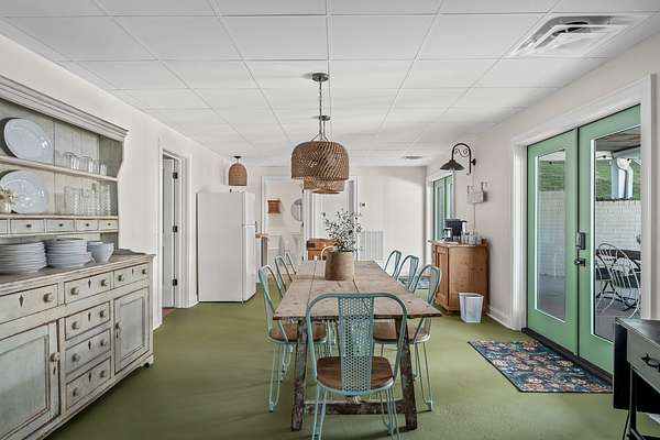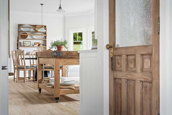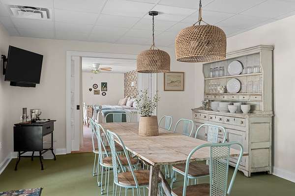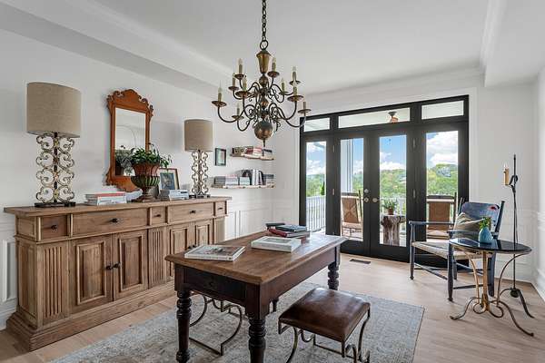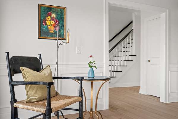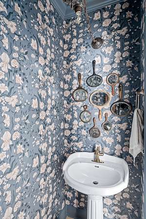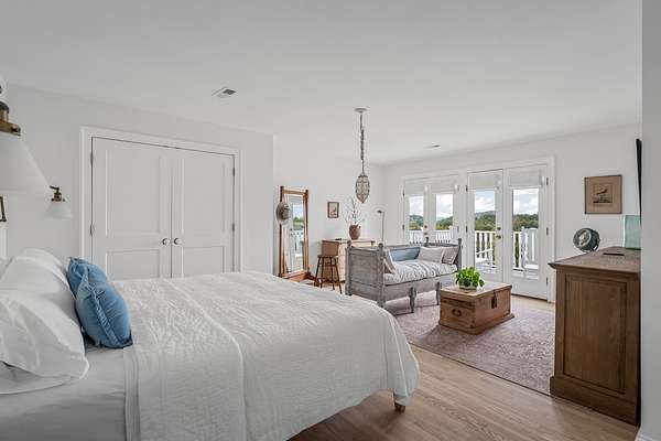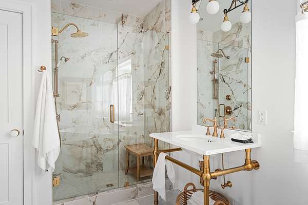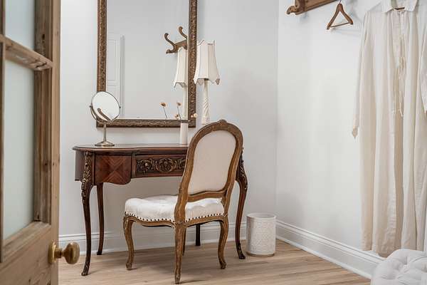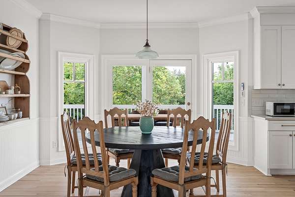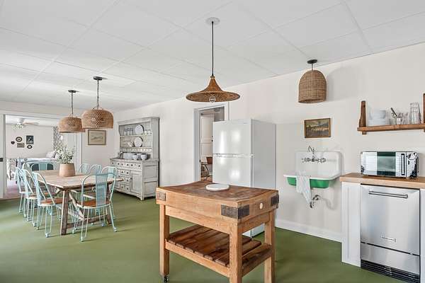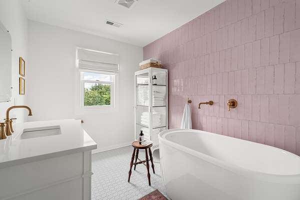 Throughout the residence, carefully curated choices elevate every room. European lighting fixtures not only illuminate but also serve as sculptural art pieces. Walls are dressed in rich designer wallpapers and paints, chosen to highlight the home's architecture and create distinct moods within each space. Functional kitchen with zelige tile, antique center island table and La Cornue stove The primary suite offers a private sanctuary, where design choices create an environment of relaxation and indulgence. Expansive windows frame serene views of the surrounding landscape, reminding you that this is a home deeply connected to its setting. The luxury hotel-inspired bathroom includes exquisite tile work, custom sinks, and fixtures chosen for both their beauty and enduring quality. Guest rooms carry forward the same level of intention. No corner of Idlewild feels like an afterthought; instead, each space has been curated to delight and welcome. With five bedrooms and 4.5 baths, there is ample room for family and guests alike.