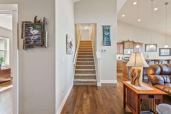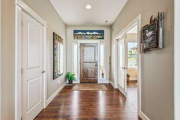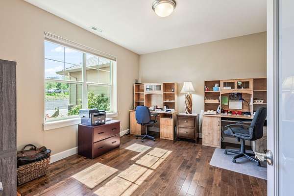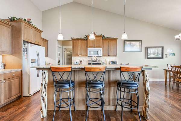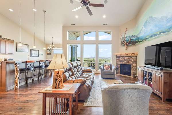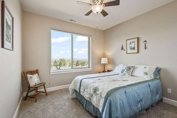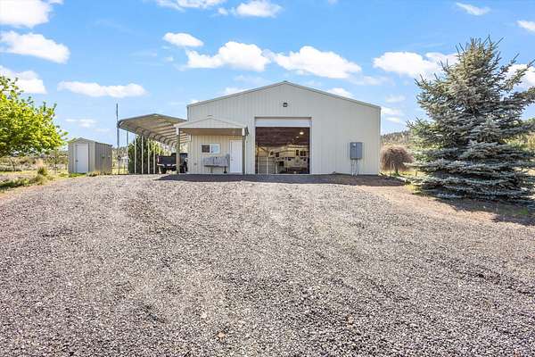 What you've been waiting for! Just a short distance from town, Cascade Views, a single-level home, and shop on 5 acres. Inside are vaulted ceilings, a Juniper wood mantle, leathered granite counters in the kitchen, and a large office. Triple-pane windows and staggered framing keep the electrical bill low. Relax in the vaulted primary suite, featuring a luxurious 6' soaking tub, and a beautifully tiled shower. Two guest bedrooms and a guest bathroom are on the opposite side of the home. A finished bonus room upstairs is perfect for hobbies or another bedroom. The property is perimeter fenced and gated, has 3 RV hookups, two dumps and an 18' x 40' RV carport. The 40' x 56' pull through RV shop has 12' tall doors, and insulated office and a half bath.