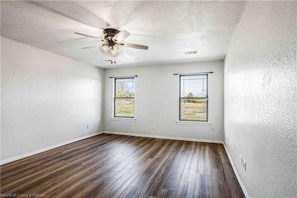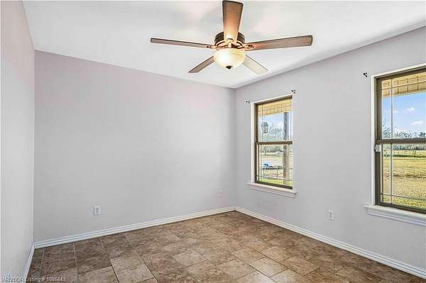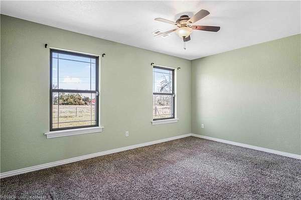 Clean and spacious home featuring a desirable split floor plan, an oversized 2 car garage, and a versatile office space that could be used as a fourth bedroom. The living room is highlighted by a beautiful gas log fireplace creating a warm and inviting atmosphere. Situated on 4.29 acres in a peaceful country setting, the property is fenced for horses and includes a sandy loam riding arena complete with electric service and lights for riding after sunset. The 2 metal pole barns were used as stalls and there is an additional storage building as well.