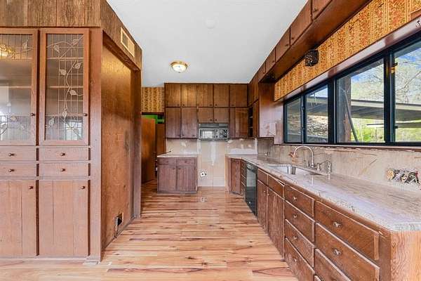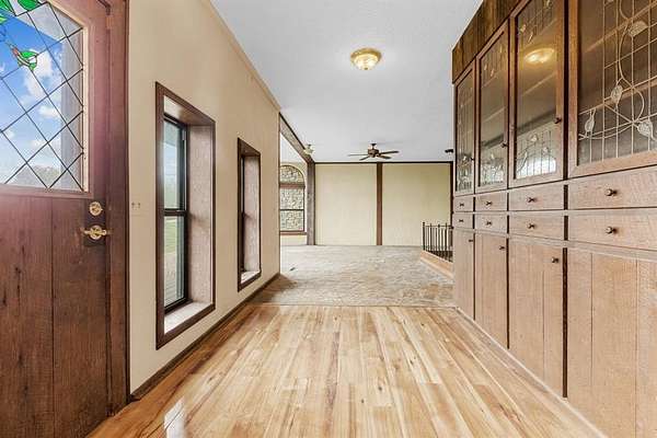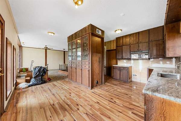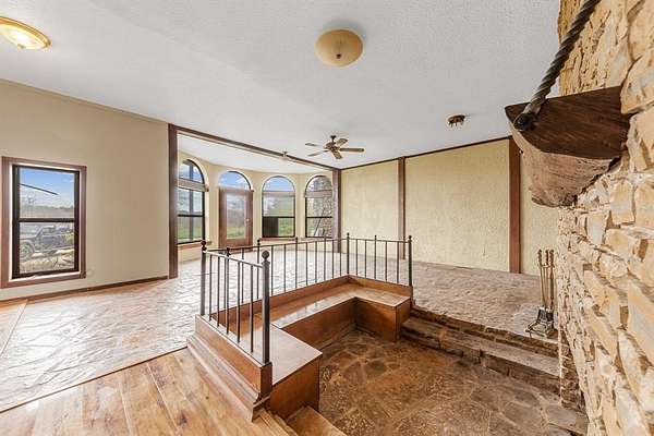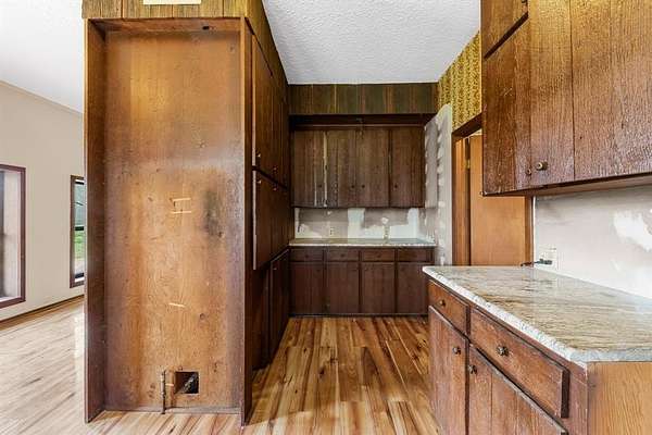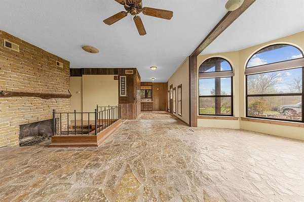 The home needs some work but has good bones, with a spacious layout, built-ins, a bay window, and a cozy stone fireplace full of character. With a little vision and effort, this house could become a welcoming country retreat.
