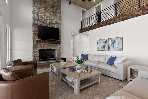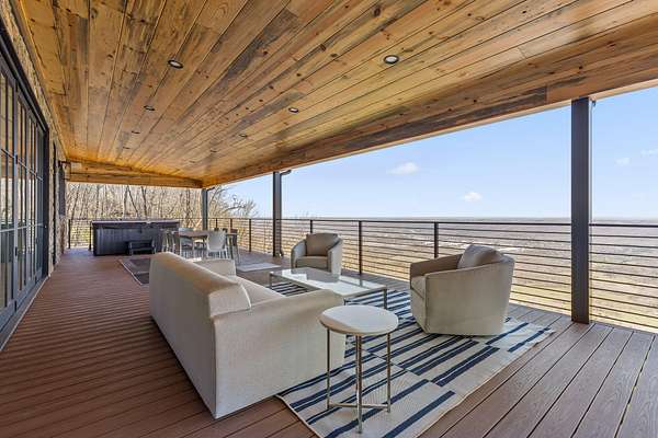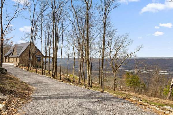 A stunning, true bluff home that epitomizes luxury living and offers views for miles. This thoughtfully designed, exquisite residence boasts a true open floor plan with seamless transition between the living room, kitchen, and the structural steel rear deck, allowing for gatherings both inside and out. The custom kitchen features top-of-the-line Thermador appliances, an abundance of counter space, and tons of natural light and breathtaking views. The luxurious master suite was thoughtfully designed with its own gas fireplace and access to the expansive deck and hot tub, while the master bathroom was designed for ultimate comfort, complete with heated floors and an indoor sauna, a true personal retreat for relaxation. The unique design incorporates custom beams, wood accents, and Sierra Pacific doors and windows which enhance the home's aesthetic appeal. Real mountain stone, featured prominently on both the interior and exterior, adds a touch of rustic elegance. The elevated outdoor lighting beautifully highlights the architecture and landscape, ensuring the property stands out even at night. Located just approximately 30 minutes from Chattanooga, residents can enjoy easy access to a vibrant array of dining, shopping, and entertainment options, making this home not just a residence, but a lifestyle choice. This is more than just a house; it's a place where luxury meets nature, creating an unparalleled living experience. All information is deemed reliable, but not guaranteed. Buyer to verify all pertinent information.
