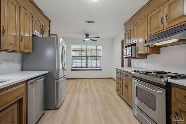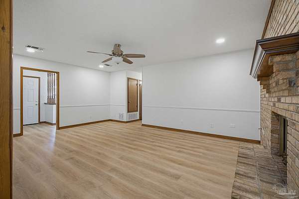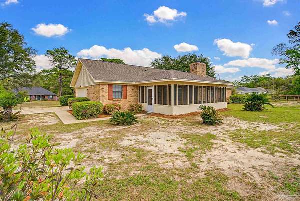 Wonderful property situated on over 2 acres in the heart of Milton, this property offers the perfect blend of space, privacy, and opportunity. No HOA! Whether you're looking for room to spread out, store your boat or RV, or build a shop, this acreage property delivers flexibility! This move-in ready home offers approximately 1,800 square feet of heated and cooled living space and features a brand-new roof and water heater, providing peace of mind for years to come. Inside, you'll find new luxury vinyl plank flooring and fresh interior paint throughout. The layout is both functional and inviting, with a sitting room and formal dining area upon entry, leading into a spacious living room highlighted by a large brick wood-burning fireplace. The layout offers three bedrooms and two full bathrooms, providing comfortable living for family or guests. The kitchen features updated countertops and connects to a versatile bonus room that can be used as a home office, playroom, or additional living space. This area also provides access to the attached two-car garage and a screened-in porch-perfect for enjoying the peaceful surroundings. Outside, the possibilities are endless. With over 2 acres, there is ample room to add a pool, workshop, additional structures, or simply enjoy the privacy and quiet of your own land. There is an irrigation well and sprinkler system in the front and back yard. Properties with this much space and potential are hard to find-don't miss your opportunity to make it your own.