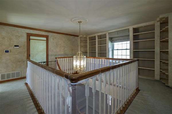 Welcome to an extraordinary 4 acre retreat offering privacy, craftsmanship, and timeless character. There is a long, scenic driveway passing a picturesque pond with a sparkling fountain before arriving at this beautifully crafted two-story residence. Inside, the home showcases extensive woodwork and thoughtful architectural details throughout. The main level features spacious living and entertaining areas and a bedroom with built in bunkbeds. Staircase leads to an upper landing designed as a cozy library or reading nook. The primary suite is a true sanctuary, opening directly onto a private upstairs balcony with sweeping views of the surrounding acreage. Whether you’re seeking a serene homestead, a weekend escape, or a property with room to expand, this estate offers unmatched potential and natural beauty. Additional 50 acre tracts available, own up to 200 acres! All information is approximate, buyer and buyers agent verify all information.
