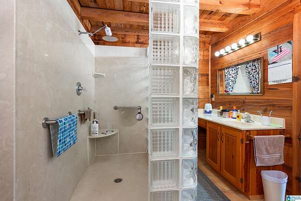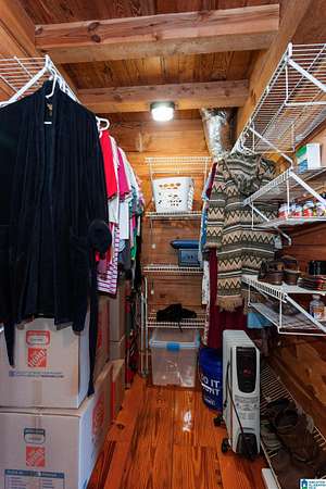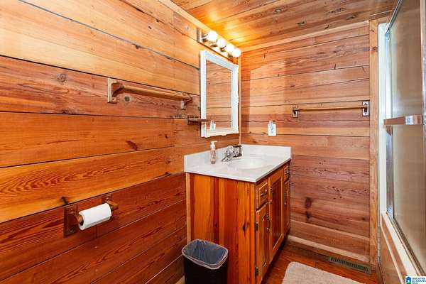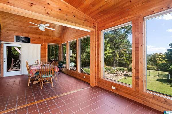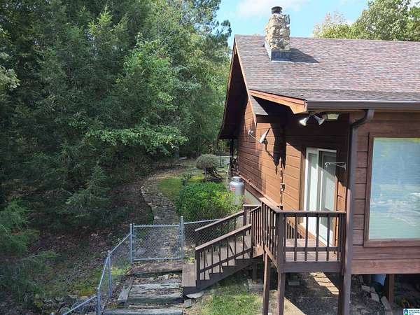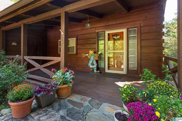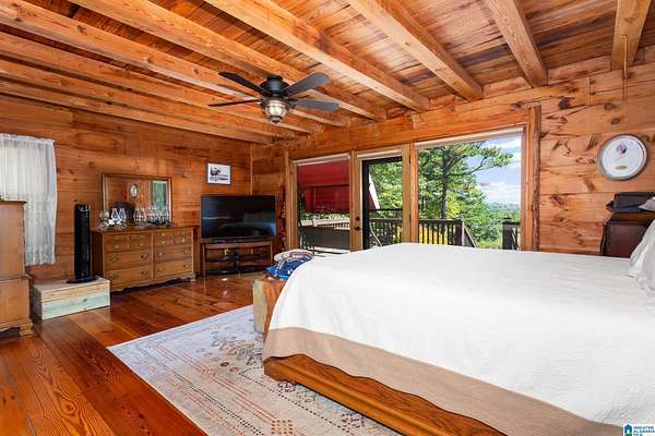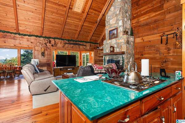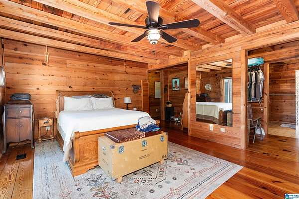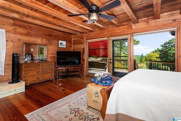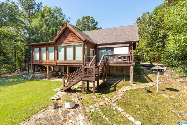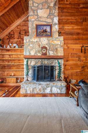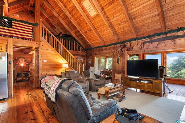 Mountain views!! Rustic log home overflows in this 1.5 story home with basement sits on about 10.8 acres in the planned community of Goldmine Acres in Delta,AL. All of the pine hardwoods in the home were sourced from a warehouse locally the fireplace features rocks gathered from the property and surrounding properties. Beautiful open floor plan with vaulted ceilings big windows to enjoy the sunrise and mountains. The unfinished basement offers a ton of potential for extra living space or game room. The master on the main has a walk in closet, dual vanities & a huge walk in shower. This is a MUST SEE!!!!