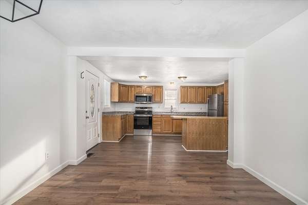 FRESHLY UPDATED LIGHT-FILLED HOME! YOUR NEXT CHAPTER BEGINS HERE! Conveniently located on a main thoroughfare near historic Thompson covered bridge, the Ashuelot River and quaint local dining and shopping, this refreshed and spacious rental offers a versatile layout and thoughtful updates for comfortable living. There's plentiful parking available and a covered porch welcomes you into a sizable living room where warm sunshine fills the space. Easy care luxury vinyl flooring provides a continuous and modern look while bright white walls create a blank canvas for your style. Relax in the living room with guests before escorting them to the kitchen where solid wood cabinetry and a large island will delight with plentiful work and dining space. Serve sit-down meals in the dining area or repurpose as an office, family room or gathering space as you see fit. On balmy days retreat to the paneled sunroom with vaulted ceiling. It's the perfect spot for reading, coffee and quiet reflection. A convenient first floor bedroom, refreshed bath and laundry make one level living a reality. Upstairs, the primary suite offers dual closets and generous attic storage while a third bedroom and charming landing workspace provide flexibility. After a day spent exploring nearby Pisgah State Park's hiking and Nordic trails and ponds, unwind in this immaculately maintained home that balances rural tranquility with easy access to Keene and the MA and VT state borders. WELCOME TO YOUR NEW HOME BASE!