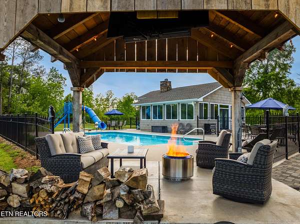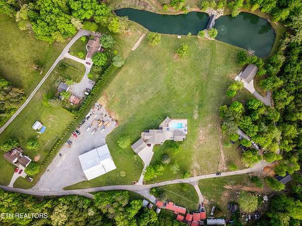 Southern Elegance Meets Unmatched Functionality - Luxurious Maryville Estate on Over 5 Acres with Pond, Pool, Guest House & 10,000 Sq Ft Garage Nestled on over 5 private acres in the scenic hills of Maryville, Tennessee, this one-of-a-kind Southern estate is a rare opportunity to own a true slice of East Tennessee paradise. Masterfully blending timeless charm, refined living, and limitless versatility, this remarkable property offers a 4,000 square feet of beautifully appointed living space, a stocked pond with a lighted covered bridge, a guest-ready pool house, and an extraordinary 10,000 sq ft detached garage with office and conference space-perfect for personal enjoyment, business use, or investment potential. From the moment you enter the long, private drive, the tranquil beauty of this over 5-acre estate unfolds before you. The grounds are meticulously maintained, featuring a sparkling pond, lush green space, mature trees, and thoughtfully placed amenities designed for both relaxation and recreation. The main residence is a two-story showcase of Southern comfort and modern luxury, featuring 4 bedrooms, 4 full baths, and a spacious private office. Inside, the open-concept living area welcomes you with a stately electric fireplace as the focal point, creating a warm, inviting atmosphere. The adjoining kitchen is a showstopper, featuring leathered granite countertops, a large center island, abundant cabinetry, and all the room you need to cook, host, and gather with loved ones. The seller has just refreshed this home with a brand new main level primary suite adjacent to the kitchen, featuring a full bath with a soaking tub overlooking the pond, a spacious walk in closet, and a private laundry room. Upstairs, the secondary primary suite serves as a serene escape, complete with its own private deck overlooking the pond and grounds. The luxurious en-suite bath includes a soaking tub and refined finishes. Two additional bedrooms, a second full bath, and an upstairs laundry room provide comfort and convenience for family or guests. Step outside to enjoy resort-style amenities right at home. The in-ground pool is perfect for summer days and is accompanied by a fireplace-equipped gazebo with a TV and ample space for entertaining under the stars. Just steps away is the pool house/guest quarters, featuring a stunning Riverstone wood-burning fireplace, full kitchen, and full bath, ideal for hosting family, friends, or even creating income as a short-term rental. The attached 3-car garage includes an underground storm shelter for added security. And for those needing serious space, the 10,000 sq ft detached garage is a dream come true. Complete with dedicated office space, a conference room, and all the work or hobby space you could imagine, this structure offers endless potential from operating a business to storing equipment, vehicles, or even creating additional living quarters. At the heart of the property, the stocked pond with its lighted covered bridge creates a breathtaking point that ties together the natural beauty of the land with the architectural charm of the estate. This property isn't just a home it's a private, legacy retreat. Perfectly secluded, yet just minutes from all that Maryville has to offer, it combines the peace of rural living with the convenience of town. If you've been dreaming of owning a luxurious estate on over 5 acres in the heart of East Tennessee, this is your chance. Schedule your private showing today and experience the grace, beauty, and endless possibilities this rare offering provides. Additional pictures are available: