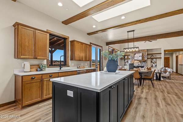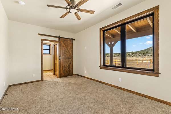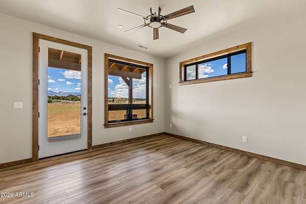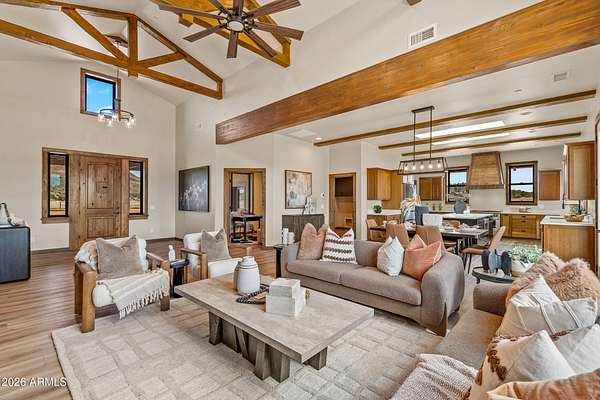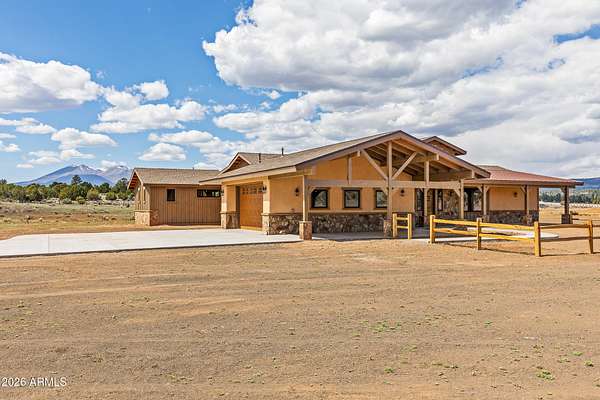 Brand-new single level home on a stunning 2.5-acre lot with unobstructed views of the San Francisco Peaks, and just minutes from vibrant downtown Flagstaff. Nestled in an exclusive gated community, this modern yet warmly designed residence offers the perfect blend of luxury, comfort, and the serenity of northern Arizona living. This thoughtfully designed 2,550 SF floor plan features 3 bedrooms, 3.5 bathrooms, a dedicated office, and the option to add a separate casita, perfect for guests, multigenerational living, or a private wellness center. RV garage can also be added. Whether for year-round living or the ultimate second-home escape, this residence is crafted for flexibility and luxury. The open-concept layout showcases vaulted ceilings, a striking large fireplace, and expansive windows that frame the iconic mountain views. The chef's kitchen boasts custom cabinetry, quartz countertops, premium finishes and a walk in pantry. Set within one of Flagstaff's last remaining buildable communities, this homesite offers peace, privacy, and convenience just minutes from downtown, yet quiet and secluded as can be.