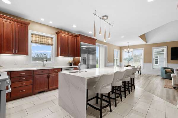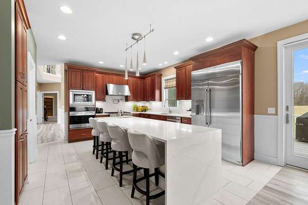Welcome to an extraordinary, 15 acre estate in Gull Lake Schools! This custom-built 6 bedroom, 8 bath, 9 car garage home offers a rare blend of luxury living and natural serenity. The main level impresses with soaring ceilings, generous living room, formal dining, half bath and a beautiful gourmet kitchen featuring premium appliances, pot filler, prep sink, walk-in pantry, wine fridge and a spacious island ideal for everyday living and entertaining. Both 1st and 2nd floors offer primary suite options, each with balcony access, walk-in closets, and luxurious ensuite baths complete with heated flooring, dual sinks and soaker tubs. Both additional upstairs bedrooms also boast ensuite baths and balcony access while laundry rooms on each level add everyday convenience. The walkout level extends living space with a full kitchen, generous recreation spaces, 2 bedrooms, 2 full baths and a wine cellar, all with new LVP and comfortable radiant floor heat. Outdoors, enjoy the new in-ground pool , the spacious deck, multiple balconies, the extensive lower patio, the professional landscaping, many varieties of fruit trees and peaceful views in every direction. Conveniently located a short distance to Sherman Lake, and minutes from popular golf courses and Gull Lake recreation. Come discover the rare blend of convenience, privacy, comfort, serenity and luxury this expansive estate offers!