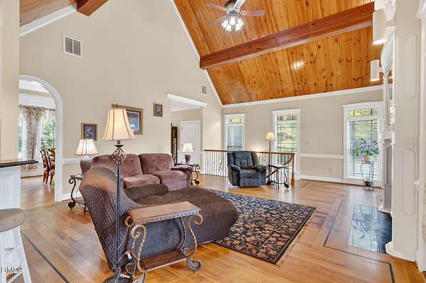 ONE-OF-A-KIND WATERFRONT RETREAT ON 2 ACRES with OVER 4,900 SQFT OF HEATED LIVING SPACE, FULLY FINISHED DAYLIGHT BASEMENT, and NO HOA!! This CUSTOM-BUILT BRICK HOME offers DEEDED WATER ACCESS, STUNNING VIEWS, and the kind of SPACE and FLEXIBILITY buyers are searching for!! ALL within the CORINTH HOLDERS HIGH SCHOOL DISTRICT and a convenient commute to RALEIGH, FLOWERS PLANTATION, PUBLIX, and HARRIS TEETER. Step inside to find REAL HICKORY HARDWOOD FLOORS, TILE, and a DRAMATIC FAMILY ROOM with SOARING CEILINGS and PINE ACCENTS. Architectural details throughout include DECORATIVE COLUMNS, TRANSOM WINDOWS, SKYLIGHTS WITH BLINDS, and custom trim work that adds character without overwhelming the space. The KITCHEN is designed for both everyday living and entertaining featuring a GRANITE ISLAND, WALL OVEN, COMMERCIAL-GRADE VENT HOOD with RANGE, HICKORY CABINETS, PANTRY, and INCLUDED APPLIANCES. Multiple dining areas including a FORMAL DINING ROOM, BREAKFAST AREA, and SUNROOM WITH WATER VIEWS give you flexibility for hosting. The MAIN-LEVEL OWNER'S SUITE is a true retreat with a FIREPLACE, PRIVATE VERANDA overlooking the water, WALK-IN CLOSET with wood shelving, and a SPA-STYLE BATH featuring a FREESTANDING TUB, DOUBLE-HEADED SHOWER, and DUAL VANITY. Upstairs offers a LOFT, FULL BATH, and FLEX ROOMS that can function as additional bedrooms, office space, or bonus areas. The FULLY FINISHED DAYLIGHT BASEMENT adds significant value and versatility with nearly 2,000 SQFT of additional heated space--complete with a SECOND KITCHEN, LIVING AREA, FIREPLACE, BEDROOMS, FLEX ROOMS, and both INTERIOR & EXTERIOR ACCESS that is ideal for MULTI-GENERATIONAL LIVING, GUEST SPACE, or ENTERTAINING. Outdoor living is just as impressive with COVERED PORCHES, WRAP-AROUND PATIO, and PROFESSIONALLY LANDSCAPED GROUNDS designed to take full advantage of the WATERFRONT SETTING with PLENTY OF ROOM TO ADD A POOL if desired. RARE opportunity to own a PRIVATE, CUSTOM WATERFRONT PROPERTY with SPACE, FUNCTION, and FLEXIBILITY that is hard to find in today's market.