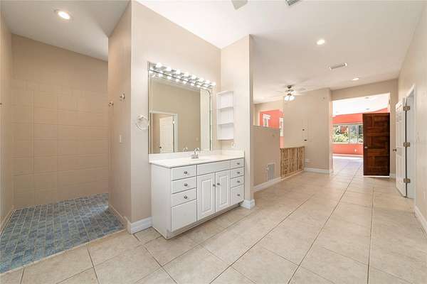- Built-In Features, Cathedral Ceiling(s), Eat-In Kitchen, High Ceilings, Open Floorplan, Primary Bedroom Main Floor, Solid Surface Counters, Solid Wood Cabinets, Split Bedroom, Walk-In Closet(s)
