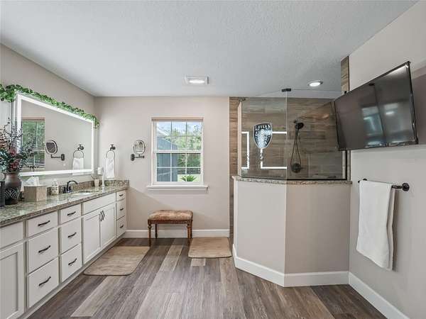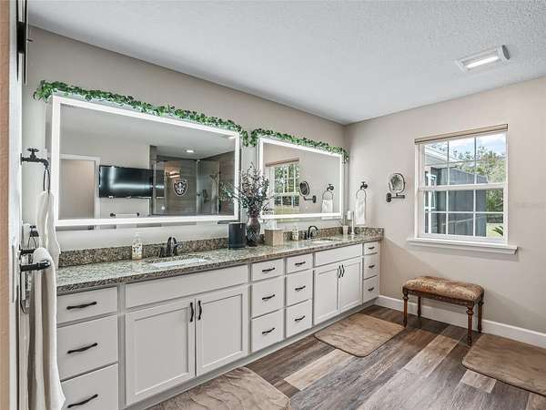 Step outside to enjoy your own piece of paradise, complete with a screen-enclosed solar-heated pool, perfect for year-round swimming. The property also comes with a whole-house generator for peace of mind, ensuring you're never without power.
