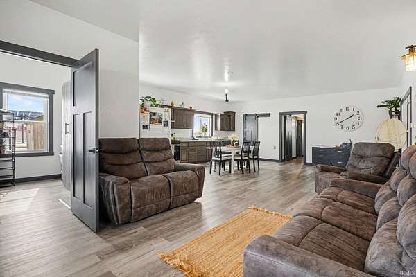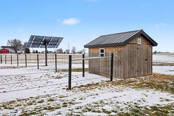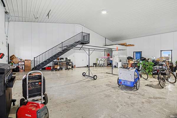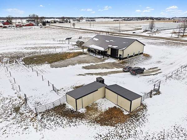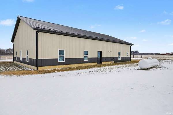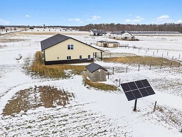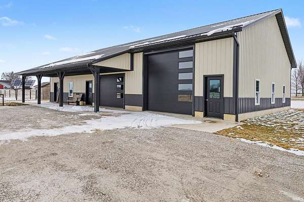 Auction! The price listed is the starting bid, not the buy it now price. Welcome to this classy bardominium with a separate horse barn and hay storage shed on 10 acres. Set up for off grid living with four large solar panels, a 6500-watt inverter, and two 100-amp lithium 48-volt batteries. There is no Nipsco electricity connected. In floor heat is throughout, with separate zones in the living space and garage space. Pastures, a hay field, a garden shed and a garden round out the property. Attend one of the open houses on Tuesdays (March 17, 24, 31, Apr 7) from 3-5pm. PHONE BID AUCTION deadline is Tuesday, April 14th at 4pm.