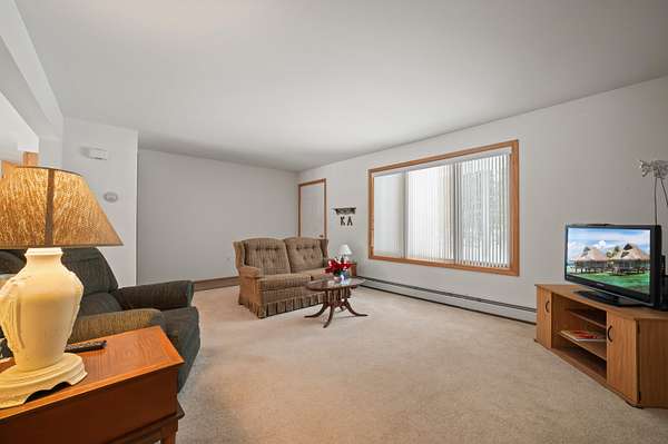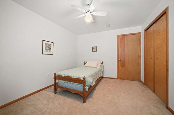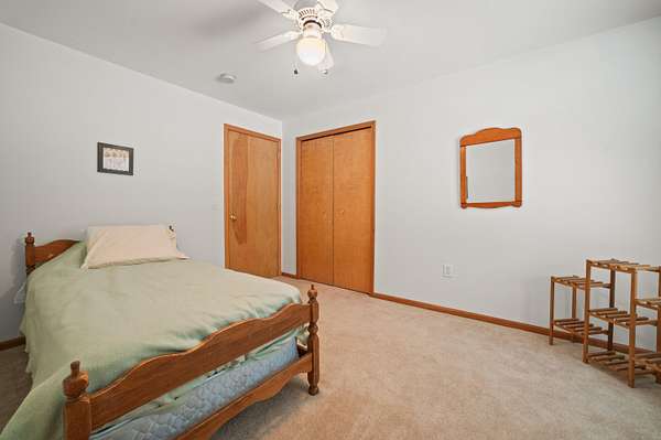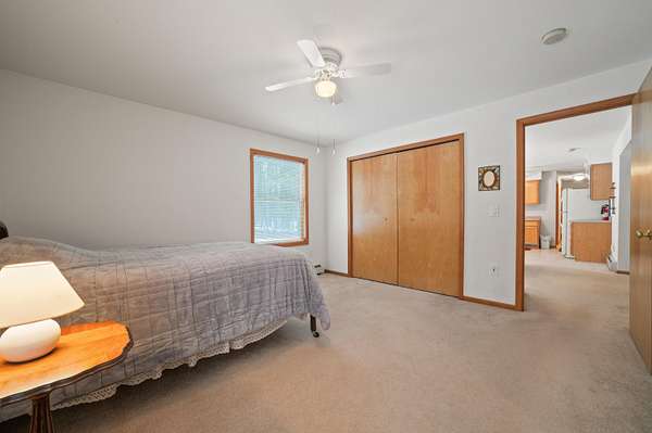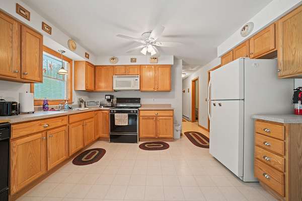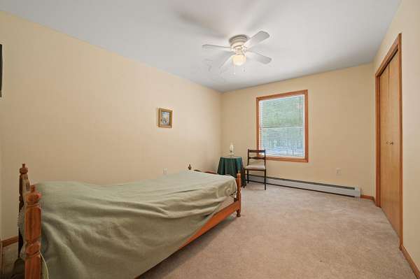 - Blinds, Ceiling Fan, Curtain Rods, Doorwall