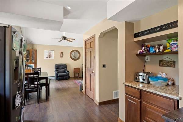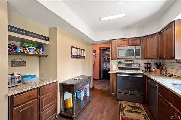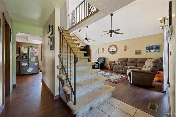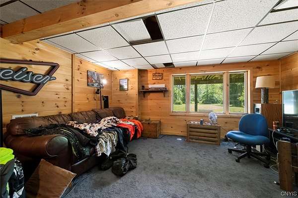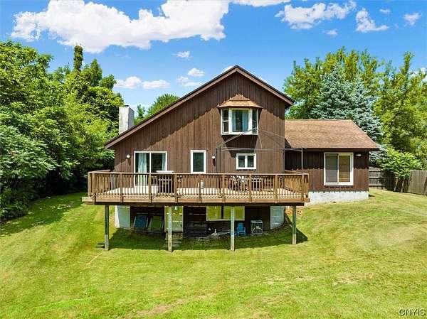 *DEVELOPMENT OPPORTUNITY * Over "44 ACRES" Sitting just a few Miles from the Micron Technology Park which is the Perfect Area for New Development!!! The Home is a 1,610 sq. ft. Transitional w/ 3 Bedrooms, Two and One-Half Baths! Exterior has A Brick and Wood Combination, as well as a 24x40 Detached Huge 4+ Car Garage!!! Features a Cathedral Ceiling in the Main Living Room with Laminate Flooring! Formal Dining Area leads to Upgraded Maple kitchen with Granite Counter Tops and a Large Pantry! 1st floor Master Suite with Knotted Pine walls + a Full Bath! 1st floor Half-Bath! Two second floor Bedrooms with Lofted Hallway! Finished Basement with a walk-Out and a Large Knotted Pine Game Room! Huge 44 Acre Lot behind which has Potential for Recreational Uses or Future Development! Wonderful Opportunity with a Convenient Location only minutes to Rt.81 & 481, Thruway, Airport, Oneida and Onondaga Lakes, Destiny Mall, Downtown Syracuse and lots of other Shopping!!!