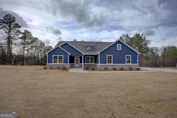 Welcome to this beautiful home featuring 4 bedrooms and 2 bathrooms with a bright, open split floor plan and soaring high ceilings. Designed for both comfort and entertaining, this home offers a spacious living area, walk-in pantry, and convenient mudroom. The master suite is a true retreat with a large built-in closet and spa-like bath featuring a standalone soaking tub and a custom oversized shower. Enjoy stylish finishes throughout including granite countertops, luxury flooring, and decorative light switches. Modern upgrades include an energy-efficient HVAC filtration system, Ring floodlight cameras with internet already installed, and an 8' insulated garage door with opener. Relax on the inviting front porch or unwind on the private back porch. Perfect for everyday living and hosting, this home blends timeless charm with modern transitional design in a location that offers both privacy and minutes to Jackson lake access.